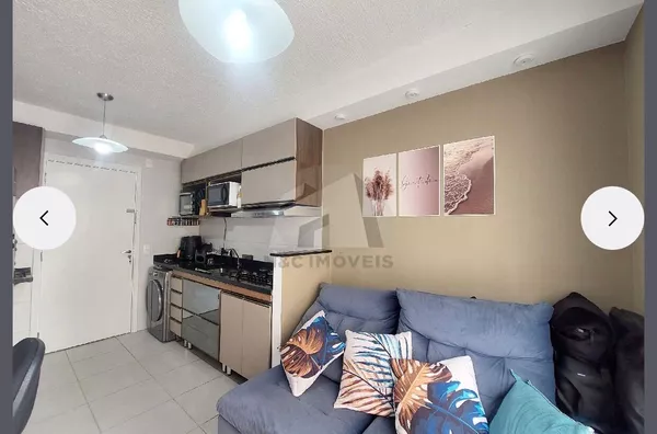 Com 36m² bem distribuídos, o imóvel conta com 2 dormitórios aconchegantes, sala com varanda e uma vista privilegiada para a avenida. A cozinha planejada já está equipada com acabamento em mármore, armário, cooktop, sugar e mesa, pronta para atender sua rotina com funcionalidade. A lavanderia também possui bancada em mármore e armários aéreos, trazendo ainda mais praticidade. O banheiro é moderno, com pia em mármore e box de vidro.
