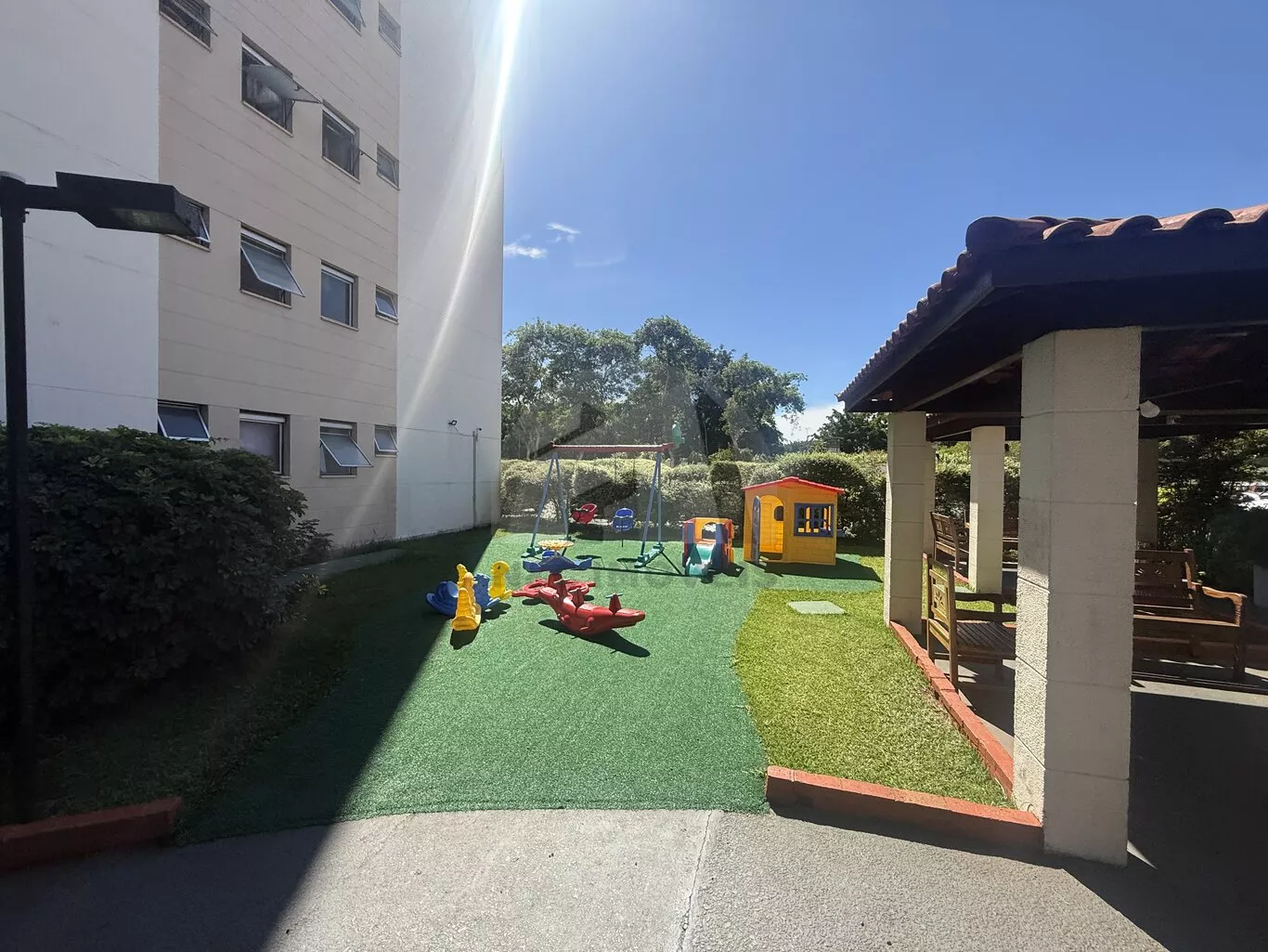 O condomínio oferece portaria, academia, quadra esportiva e mercadinho 24 horas, garantindo mais segurança, lazer e conveniência para o dia a dia. O imóvel aceita pets de pequeno porte, um diferencial importante para quem possui animal de estimação.