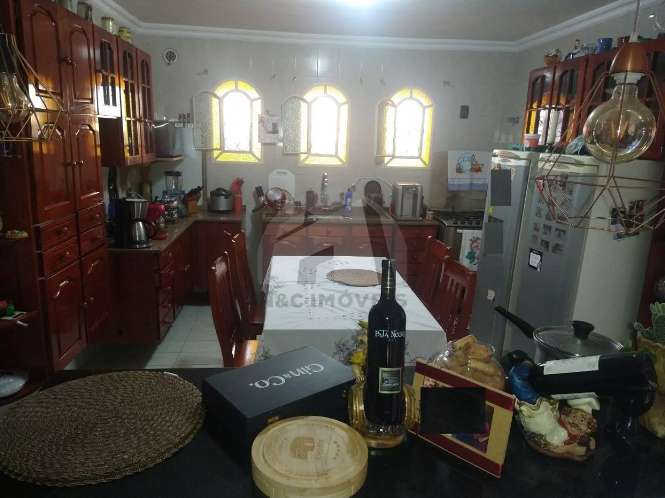 3 dormitórios, com armários planejados em mogno, lustres e ventiladores de teto em dois deles