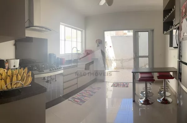 O imóvel conta com 3 dormitório (sendo 1 suíte), 3 banheiros, sala de jantar e estar, lavabo, cozinha, área de serviço, 4 vagas de garagem, escritório, ampla área de festa com churrasqueira, terraço.