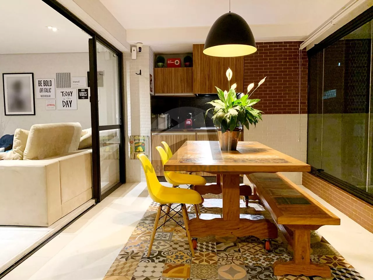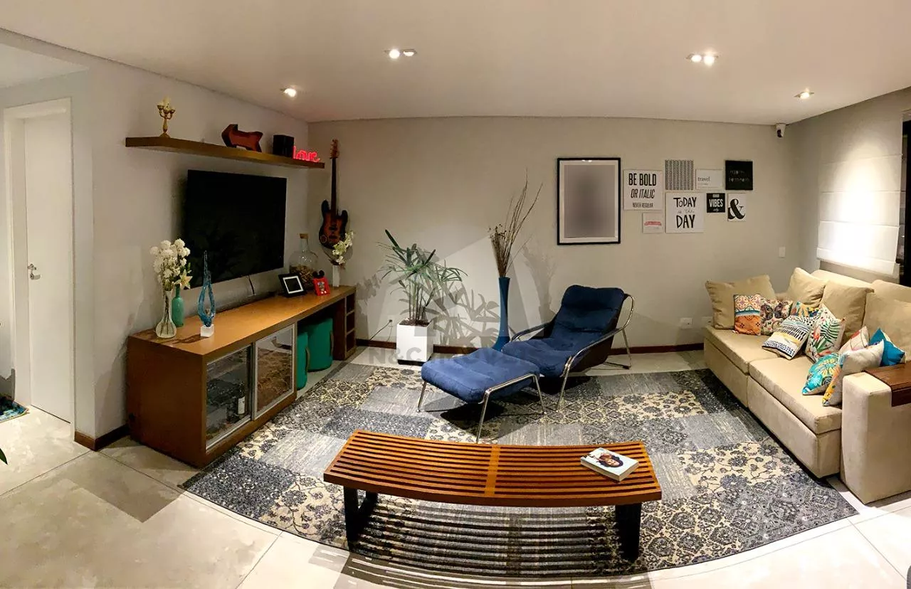 A sacada gourmet, com fechamento em vidro e churrasqueira, é perfeita para momentos de lazer, enquanto o hall de entrada social privativo, decorado com espelho, adiciona um toque de elegância desde o primeiro momento. O apartamento ainda conta com pisos em taco palito de madeira nos quartos, cimento queimado na sala e sacada, e porcelanato recém reformado na cozinha e lavanderia. Para a comodidade dos moradores, são 3 vagas de garagem e depósito privativo no subsolo.