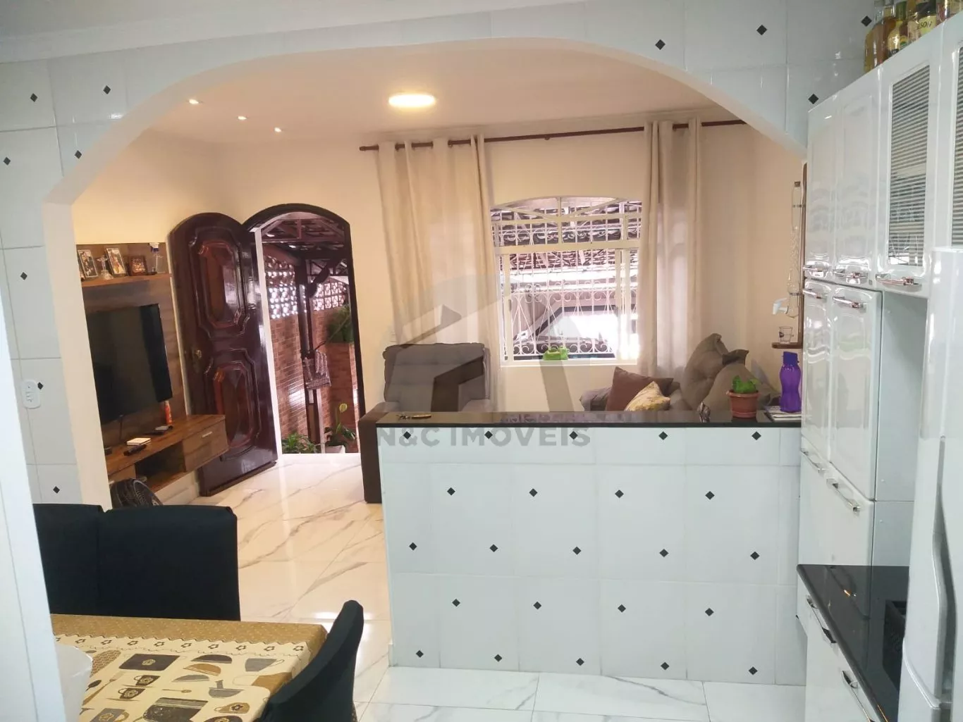 O imóvel de 125m², possui 3 dormitórios, sendo 1 suíte, banheiro, 2 vagas de garagem, quintal nos fundos, área com churrasqueira, e lavanderia.