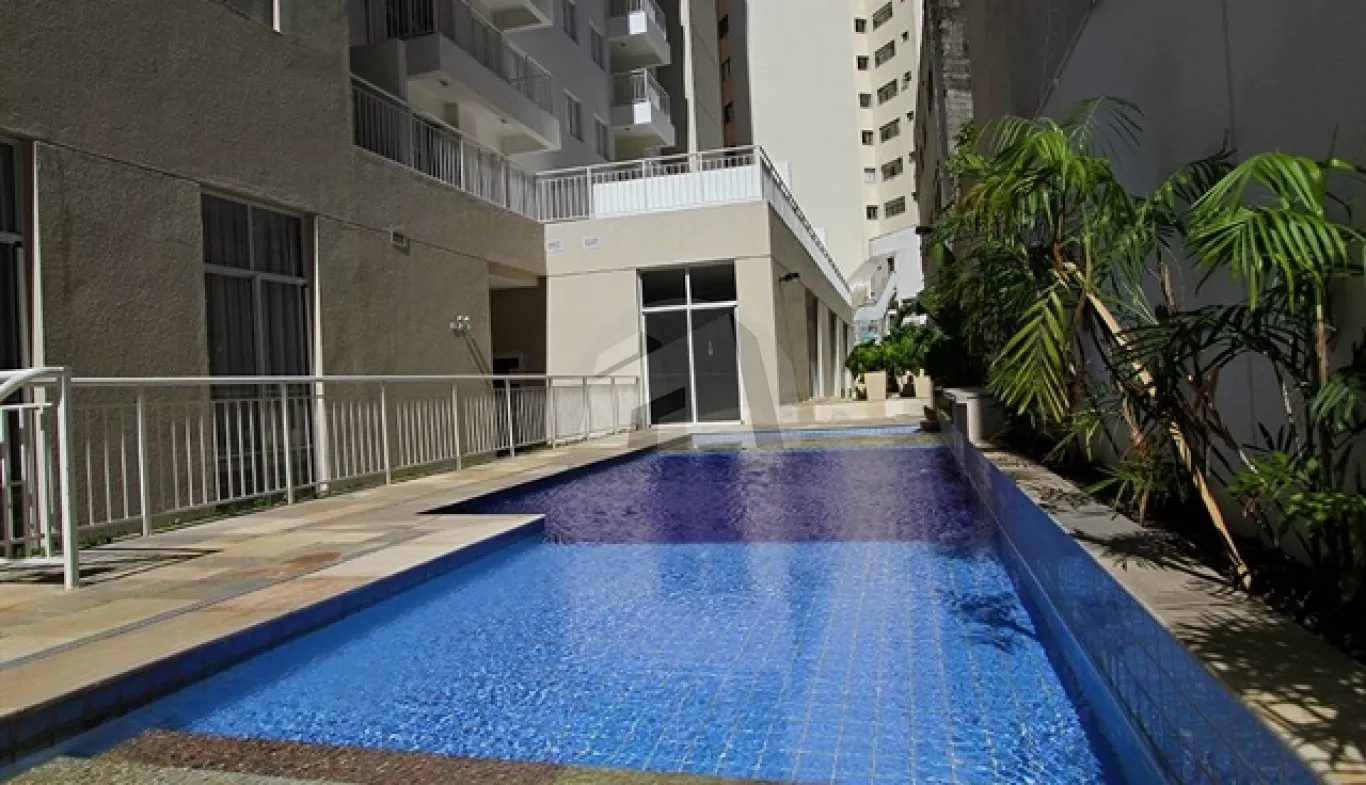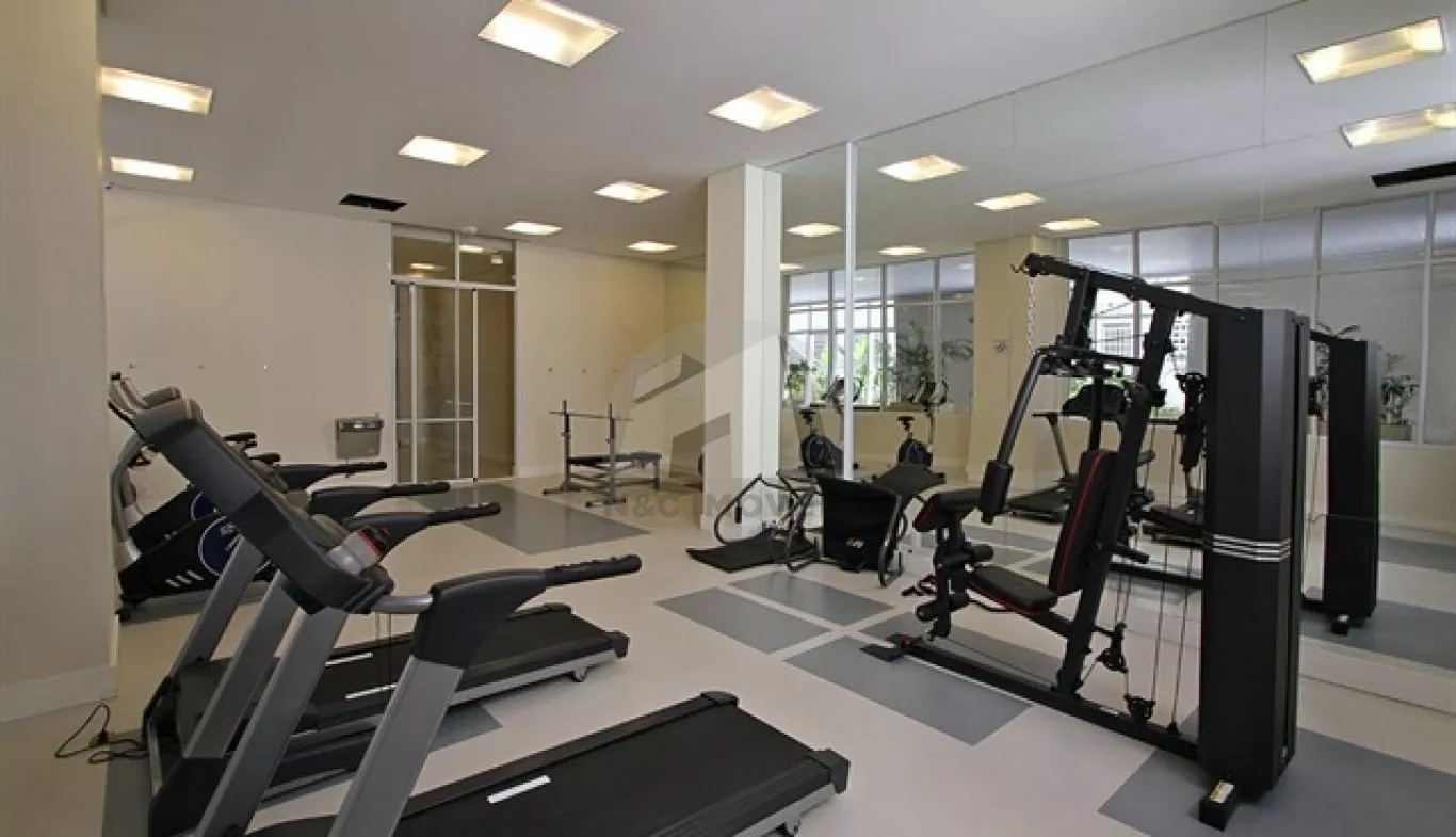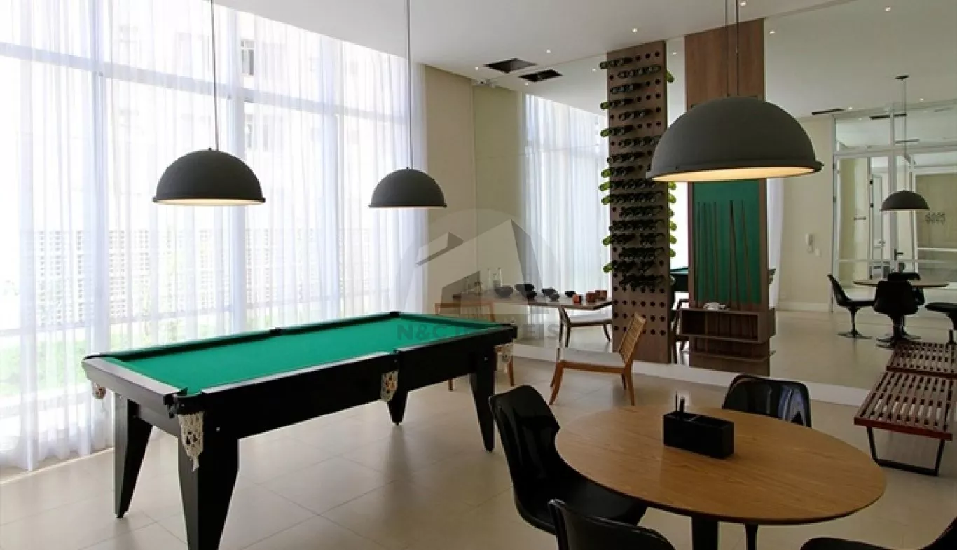 Condomínio com academia, salão de jogos e piscina.