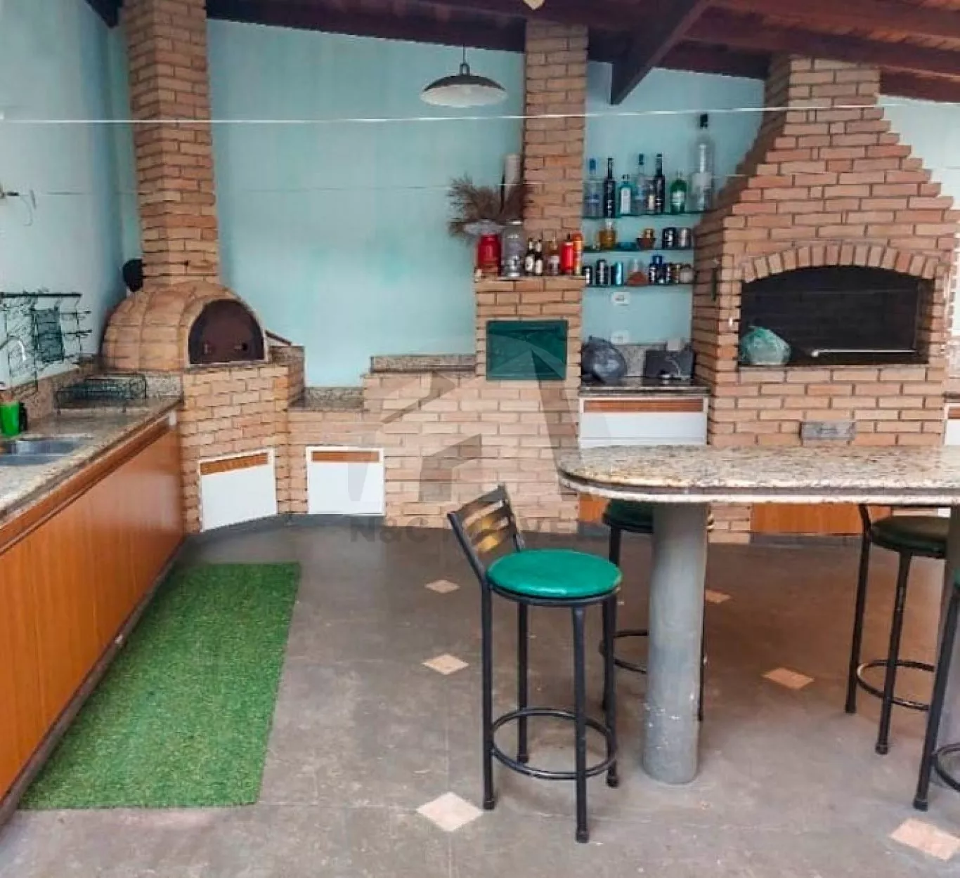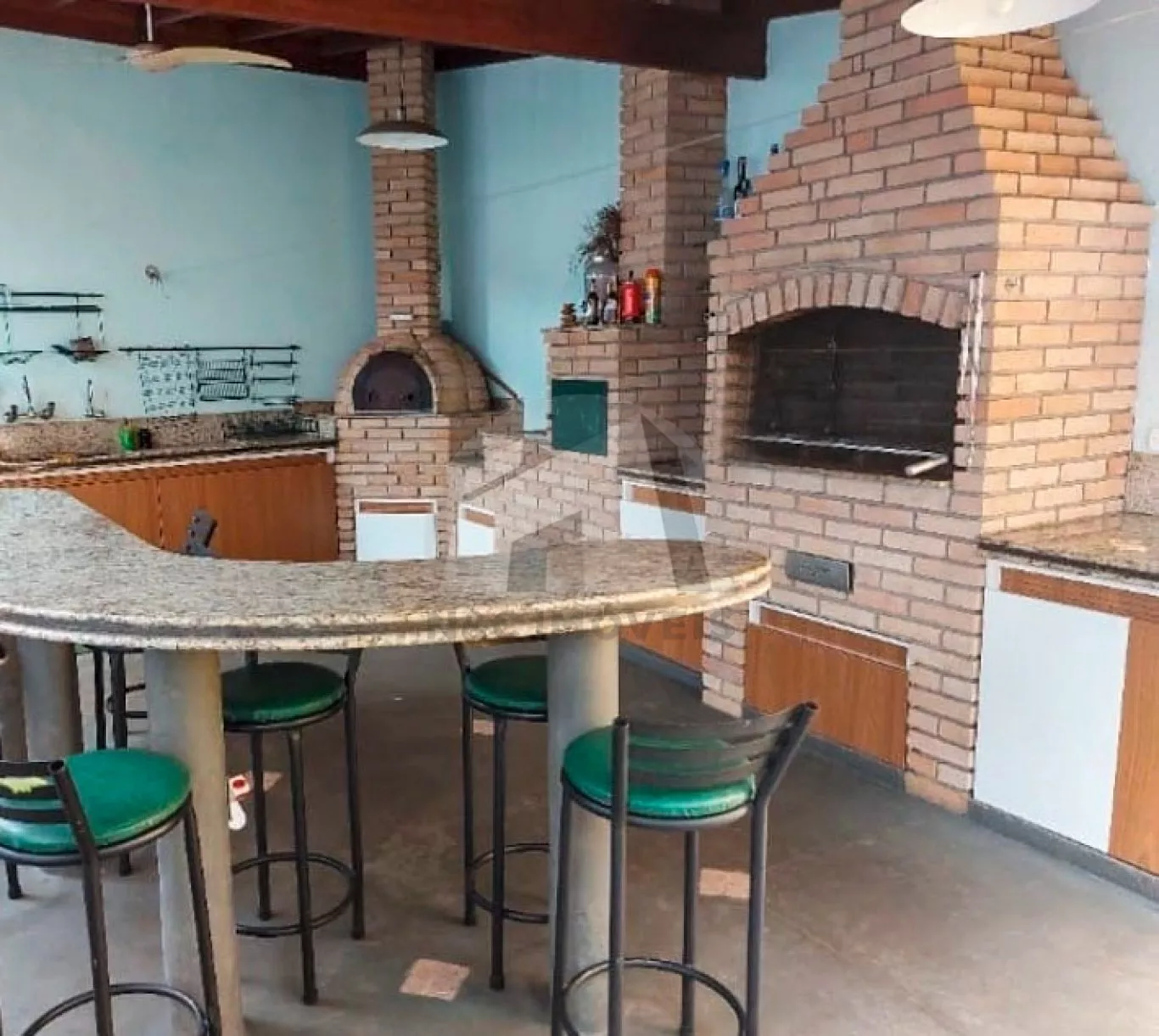O terreno possui 450m², e 350m² de área construída. São 5 dormitórios, sendo 4 suítes, sala de estar e sala de jantar, dormitórios com armários, cozinha com armário, e lavabo. Na área externa, possui um espaço amplo, além de área gourmet com churrasqueira e forno à lenha.