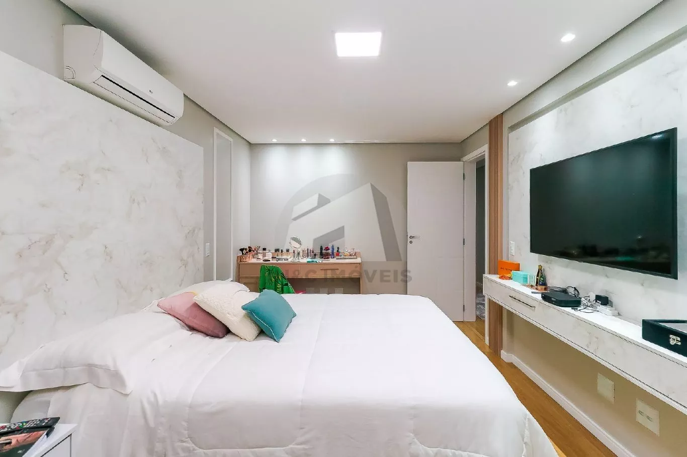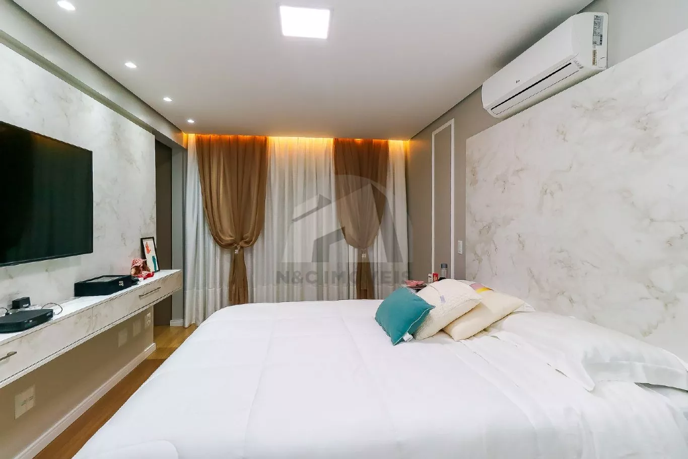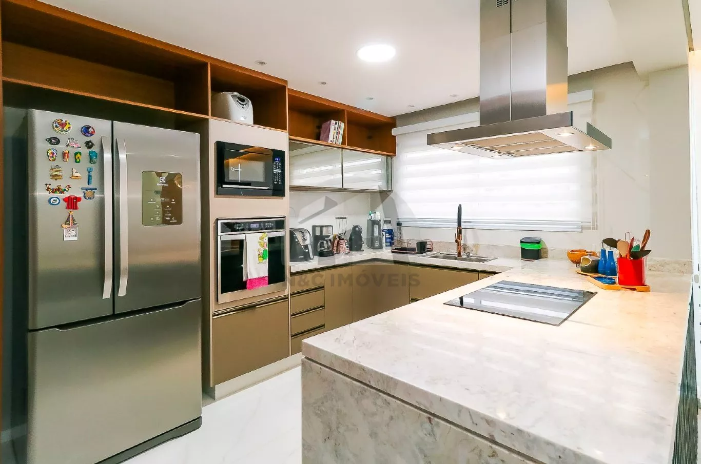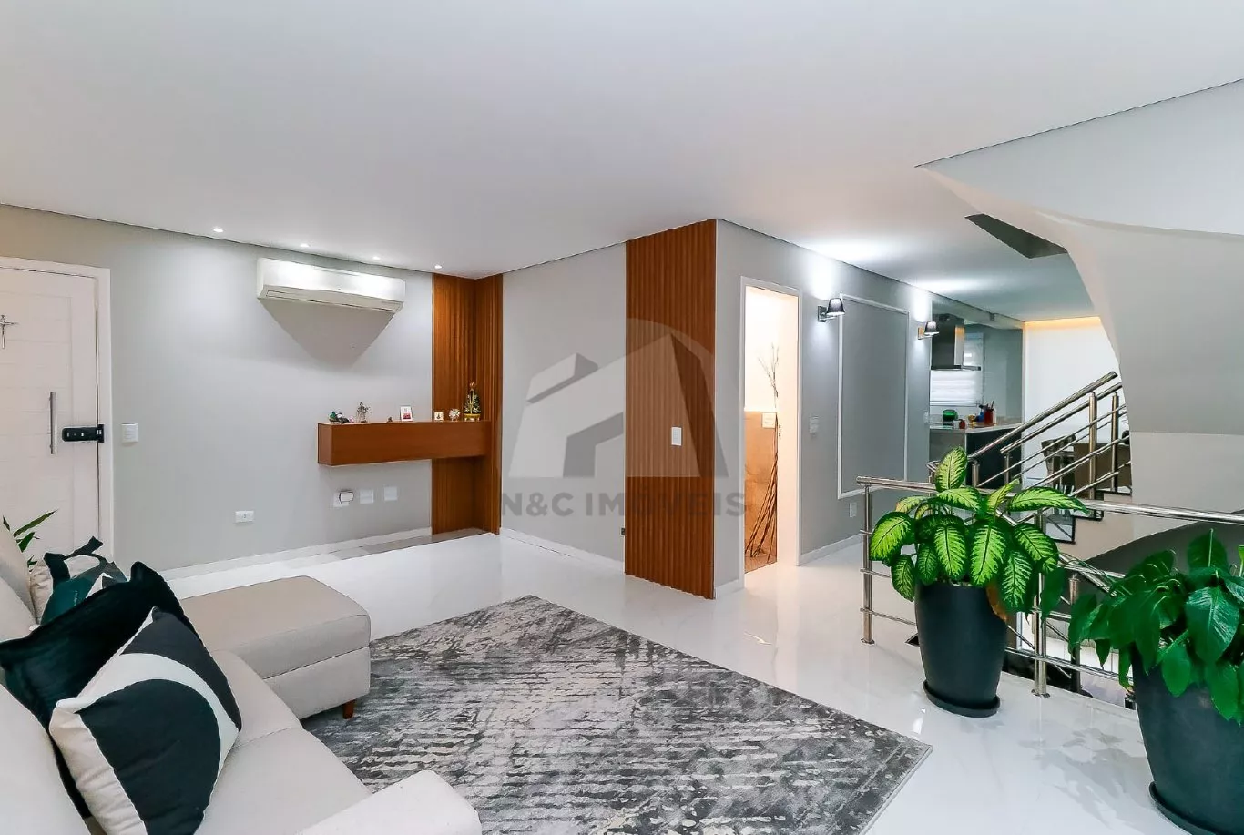 No andar térreo, o imóvel oferece uma sala de entrada elegante, lavabo e uma cozinha com armários planejados integrada à sala de jantar, criando um espaço ideal para receber com conforto. No andar inferior, há uma sala de TV aconchegante, cozinha auxiliar com armários, lavabo, despensa e acesso direto à área gourmet com churrasqueira – perfeita para confraternizações em família.