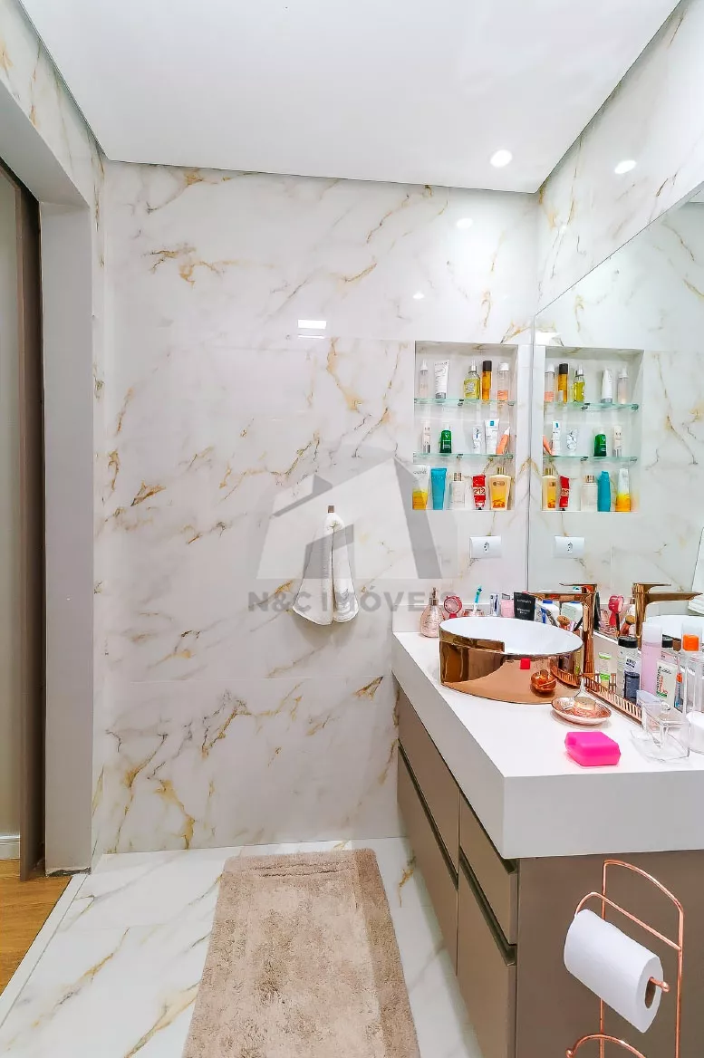 Com 212m² de área construída, a casa conta com 3 suítes amplas, todas com armários planejados, excelente iluminação natural e pias em mármore, garantindo sofisticação e funcionalidade. A planta inteligente distribui os ambientes em três andares bem definidos e integrados.