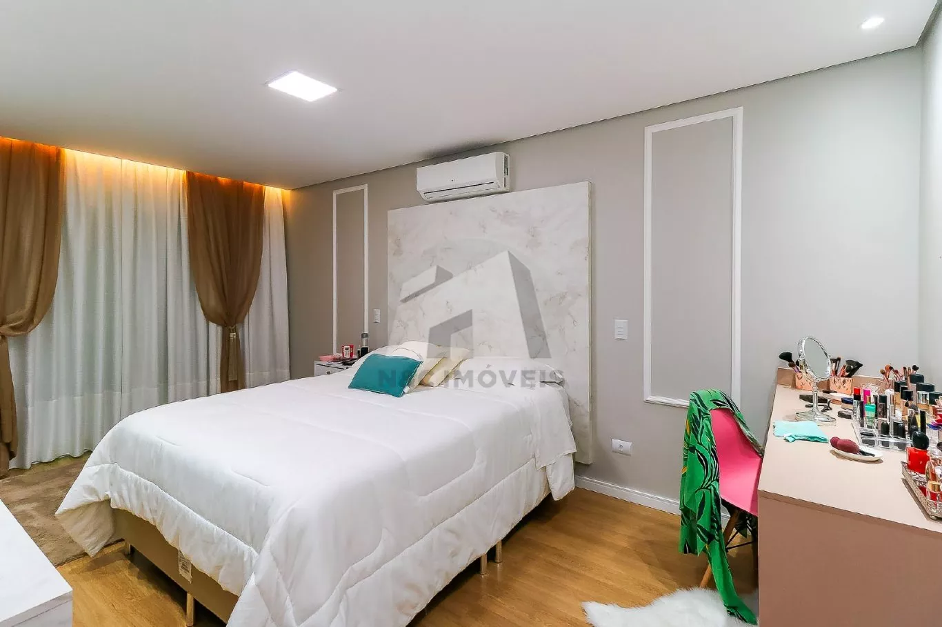 O andar superior abriga as três suítes, todas bem ventiladas, com excelente luminosidade natural e um projeto que valoriza cada metro quadrado do imóvel.