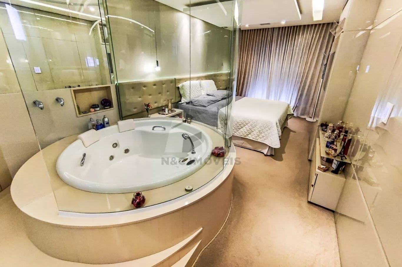 Com 300m² de área útil, a residência oferece 3 suítes elegantes, sendo a suíte master um verdadeiro refúgio: conta com closet, sacada, jacuzzi, ar-condicionado, porta balcão com blackout e iluminação em LED. As demais suítes também oferecem armários planejados, janelas com blackout, ar-condicionado e excelente projeto luminotécnico.