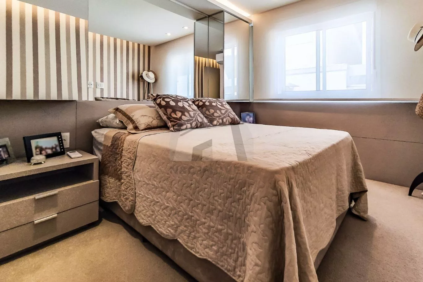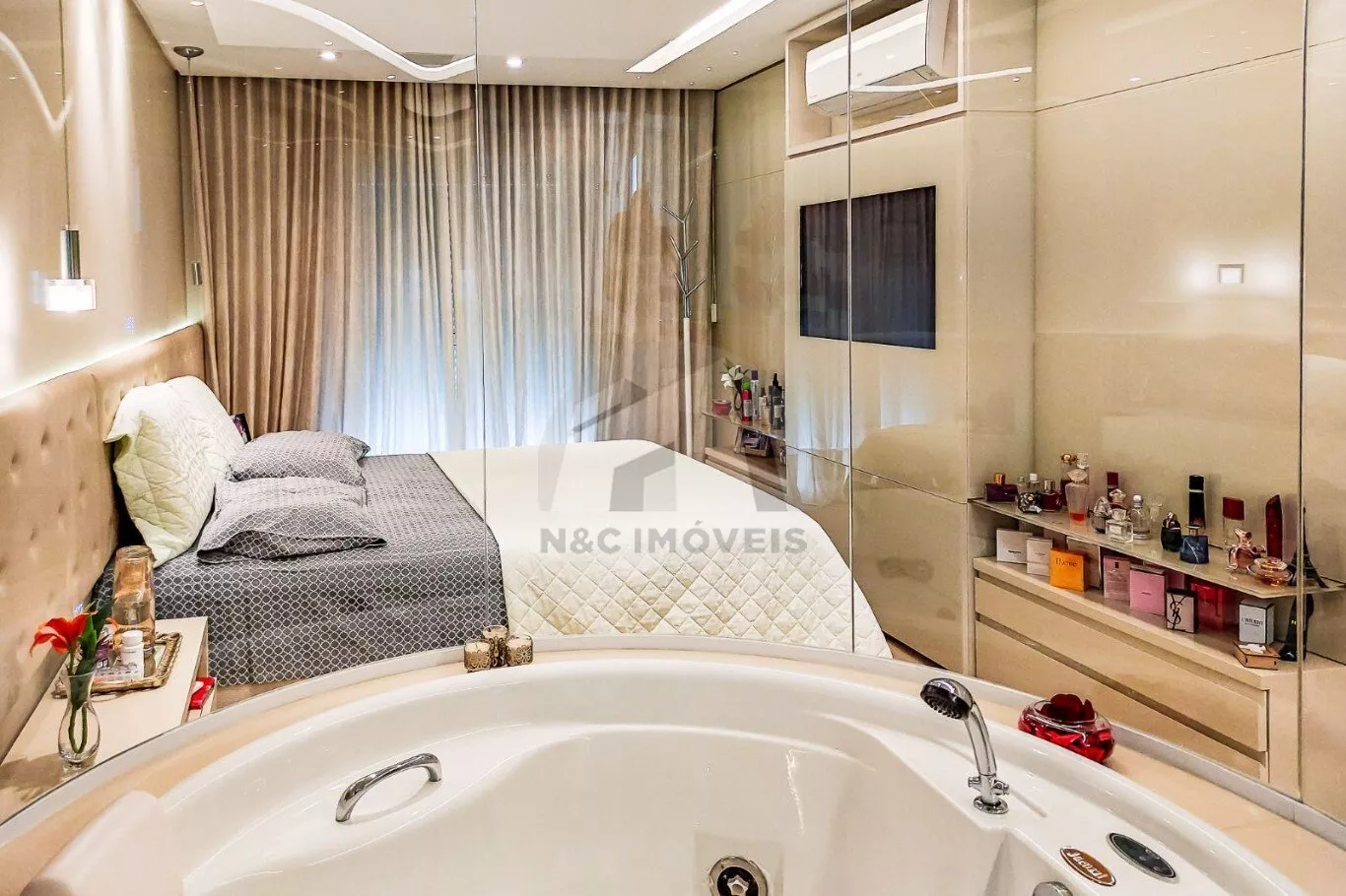 Tudo isso mobiliado com extremo bom gosto, incluindo colchões, TVs, sistema de som ambiente, eletrodomésticos, tapetes, cortinas, persianas, sofás, poltronas, vasos decorativos e mesa de jantar com 6 cadeiras – um imóvel completo e sofisticado em cada detalhe.