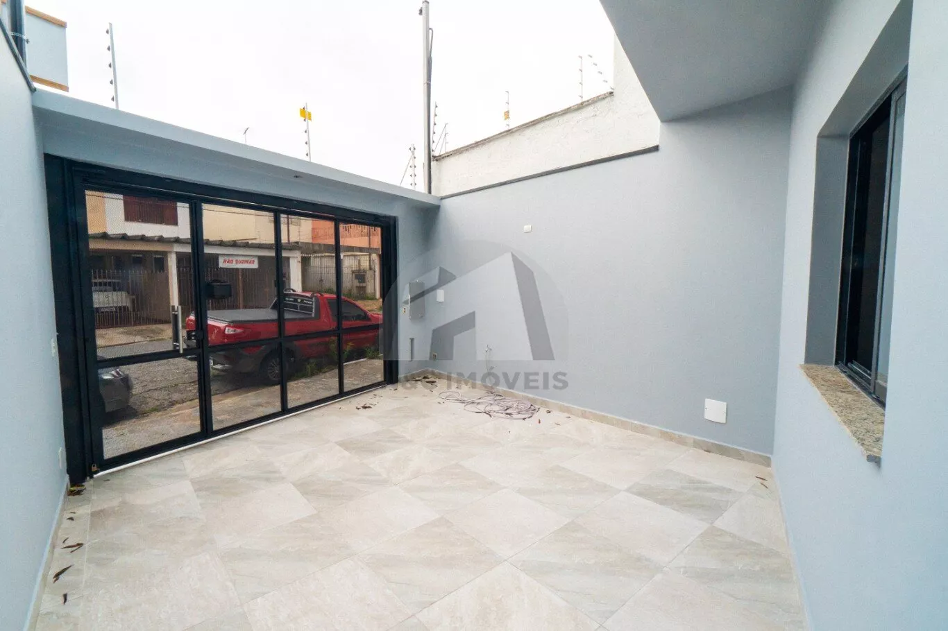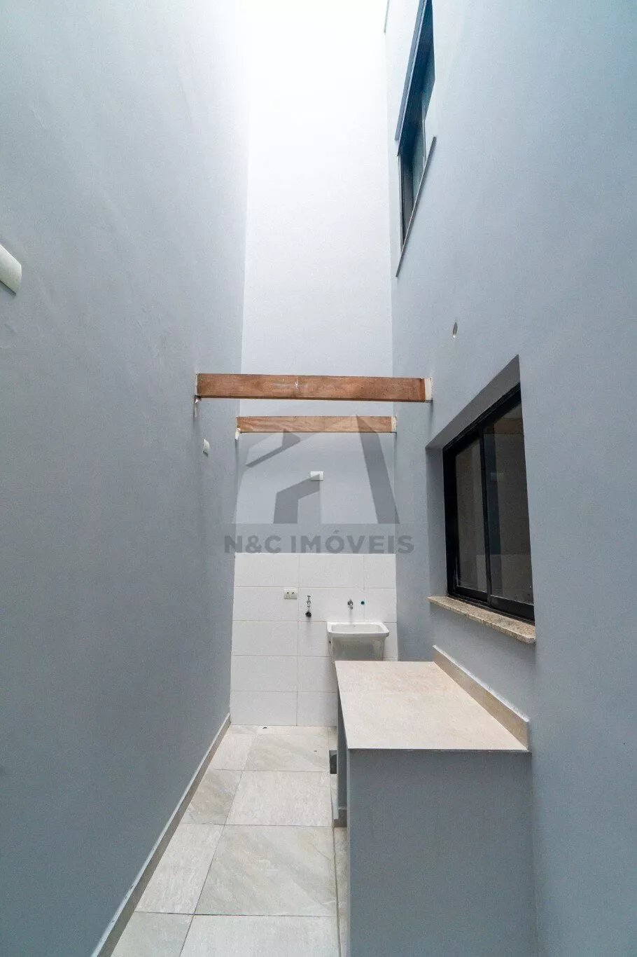 Sobrado de 90m² de área construída, conta com 3 dormitórios (sendo 1 suíte) e terraço com churrasqueira.