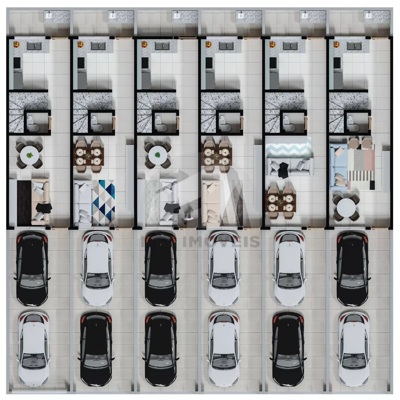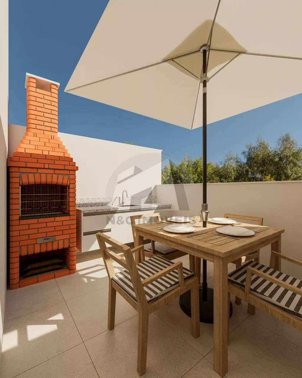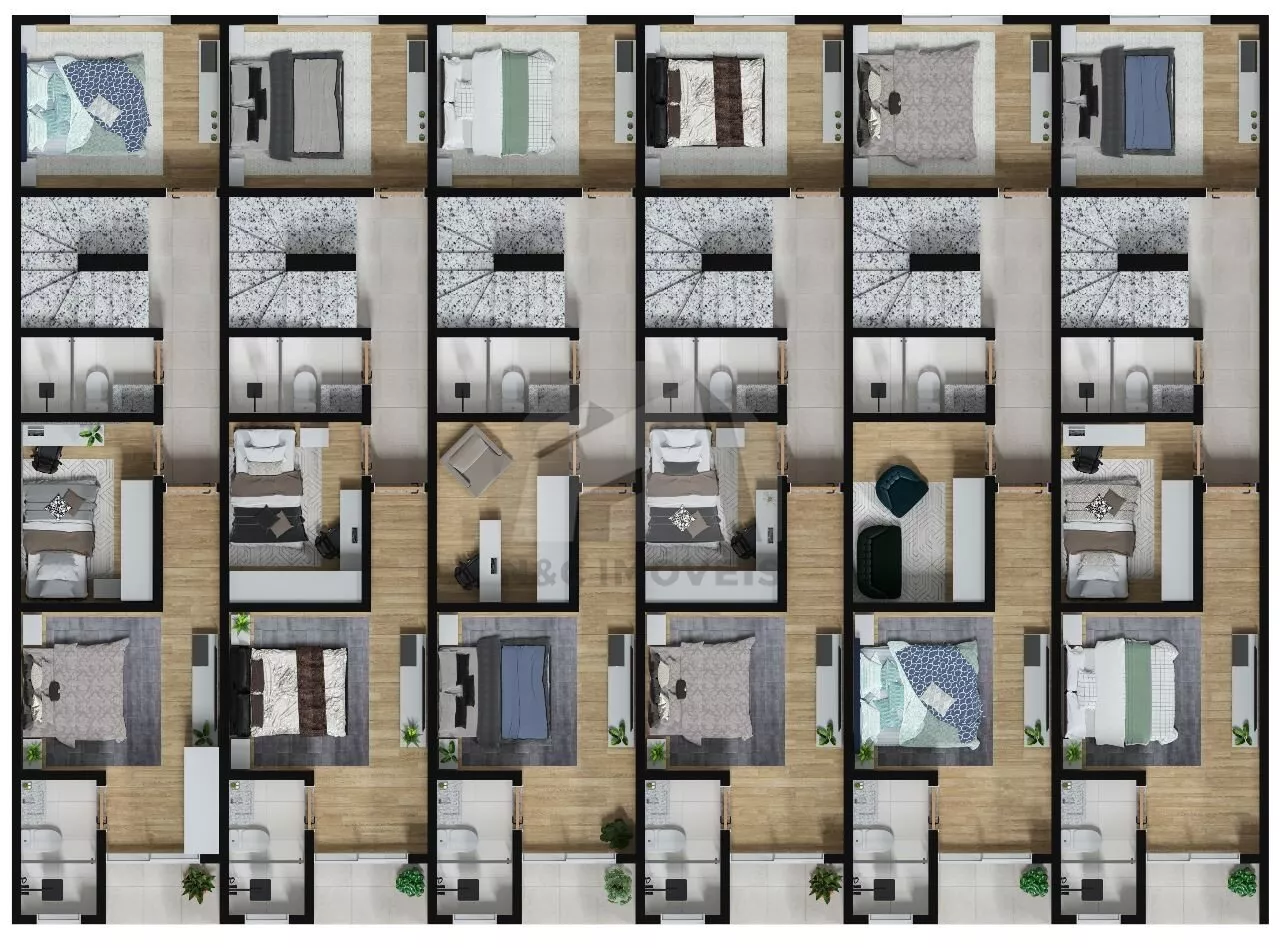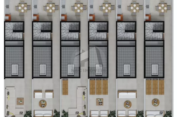 Sobrados de 95m², contam com 3 dormitórios e e terraço com churrasqueira.