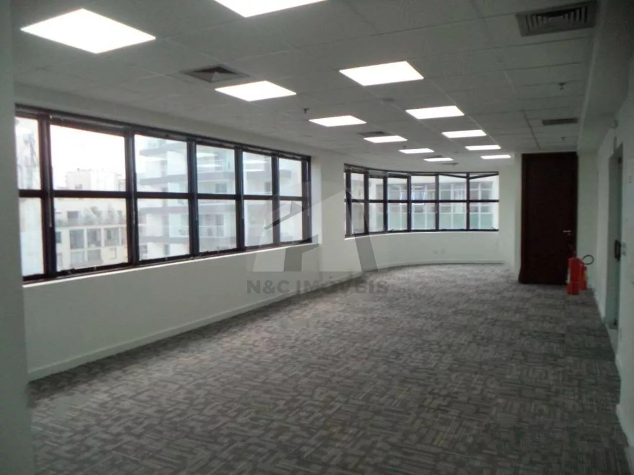 O conjunto conta com 10 vagas de garagem e 4 banheiros. piso revestido com carpete, e ar condicionado.