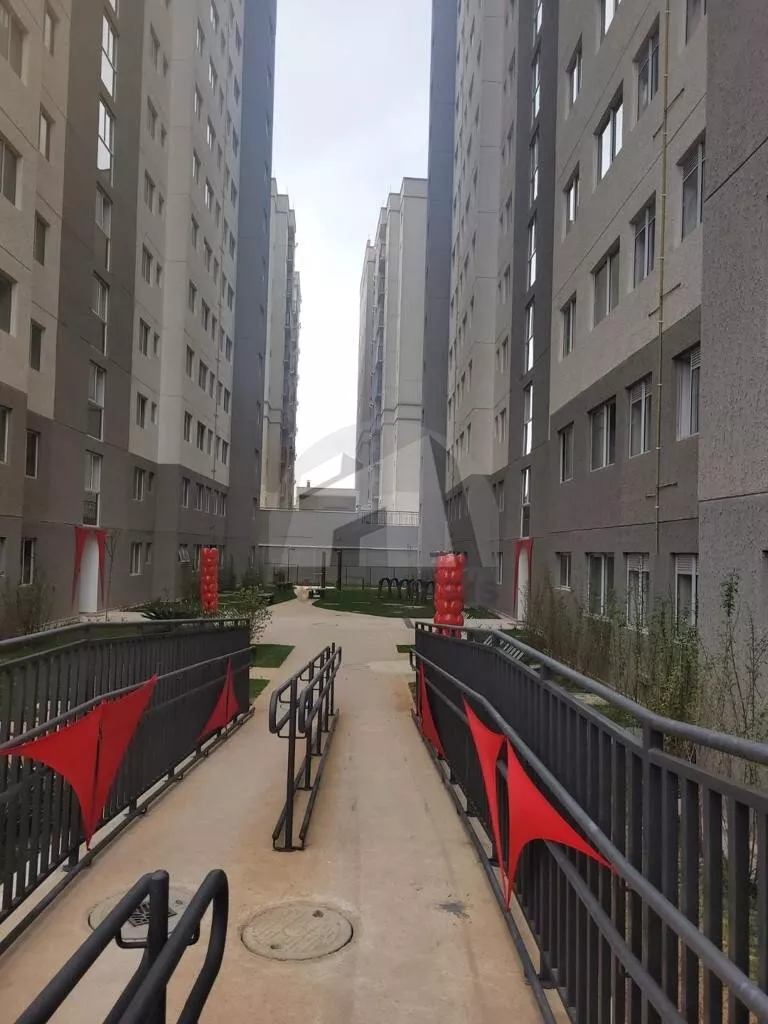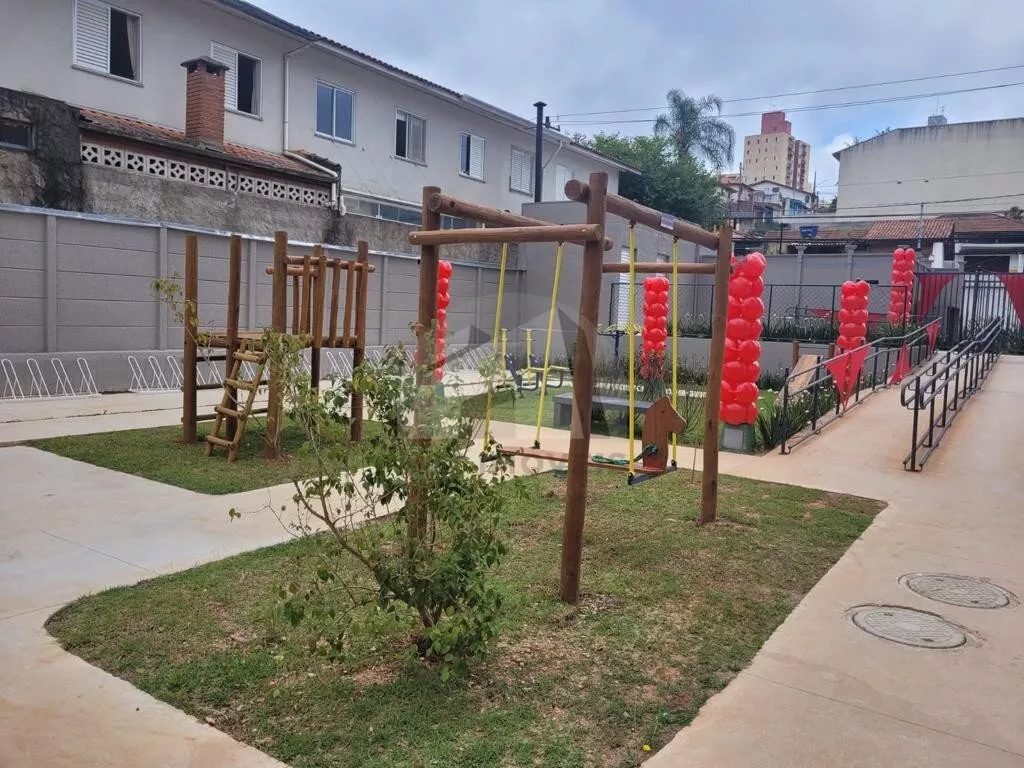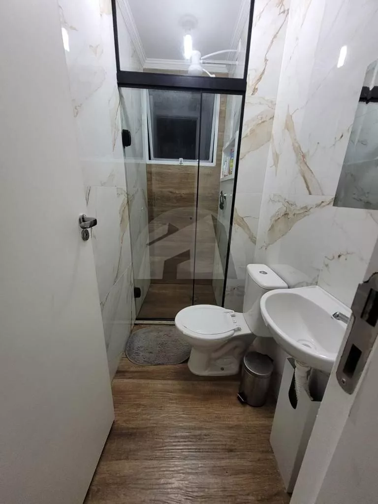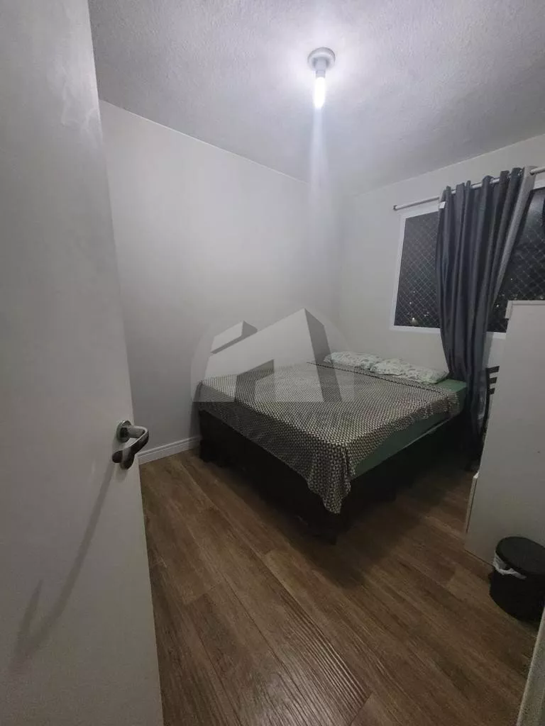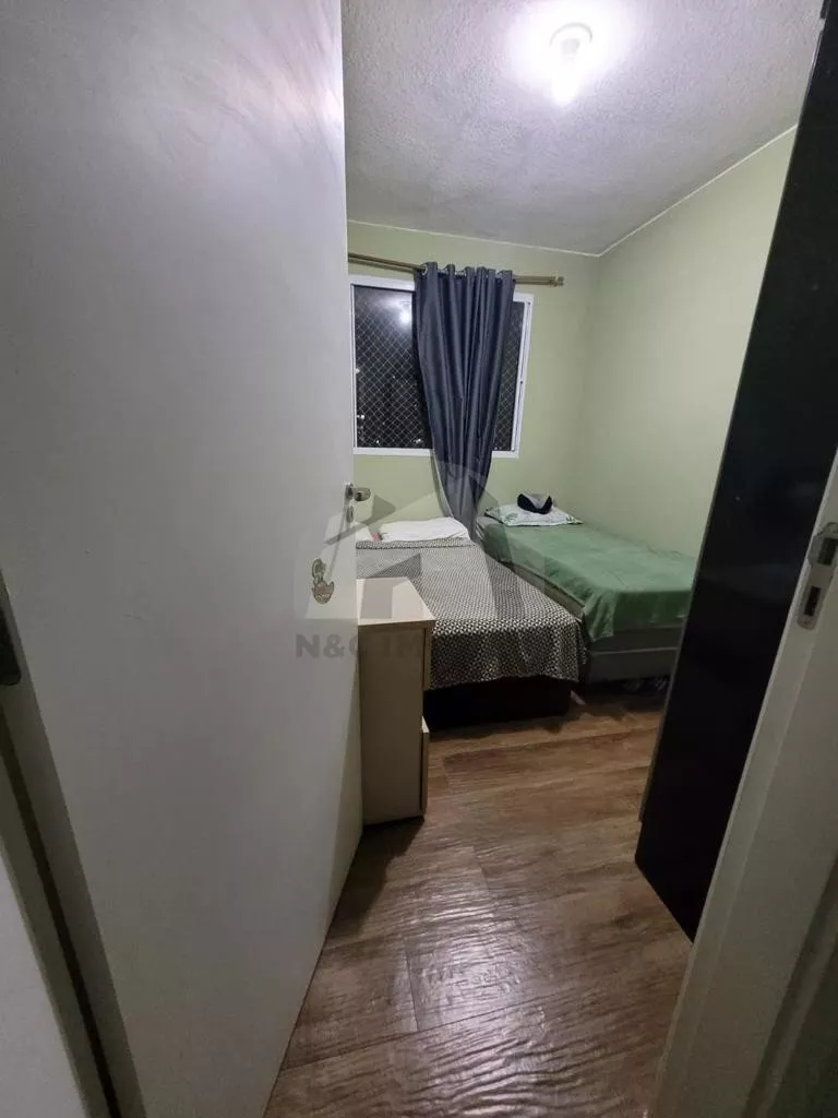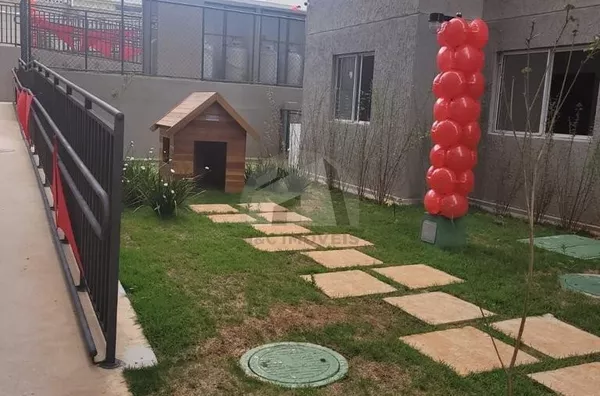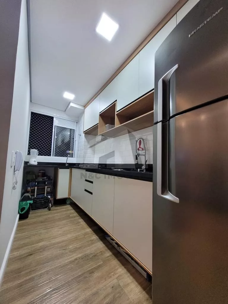 Apartamento de 44m², conta com 2 dormitórios, sala, cozinha americana com armários planejados e área de serviço.