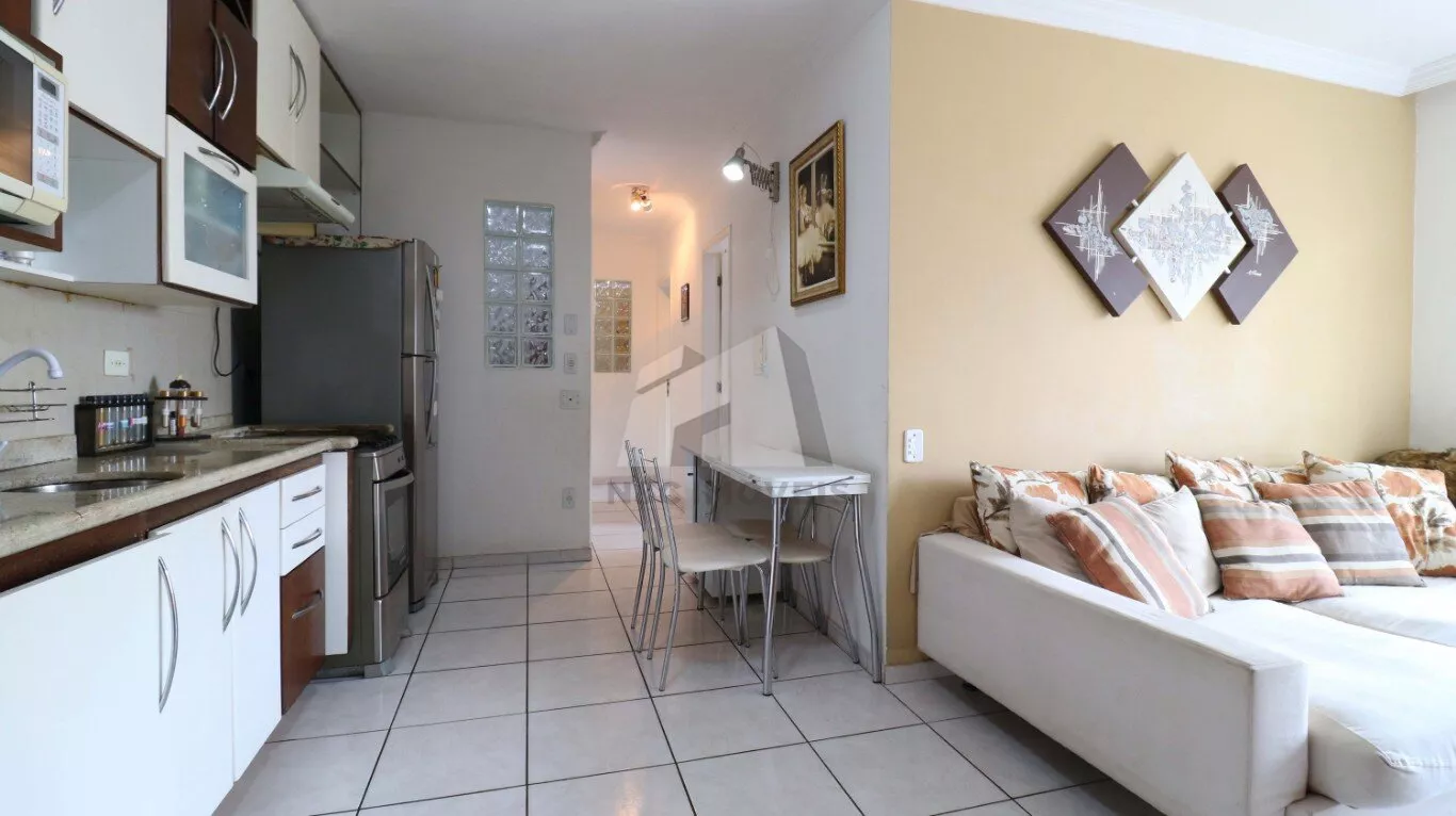 O imóvel dispõe de 2 dormitórios, sendo um deles, uma bela suite, sala, cozinha, 2 banheiros e 2 vagas de garagem.