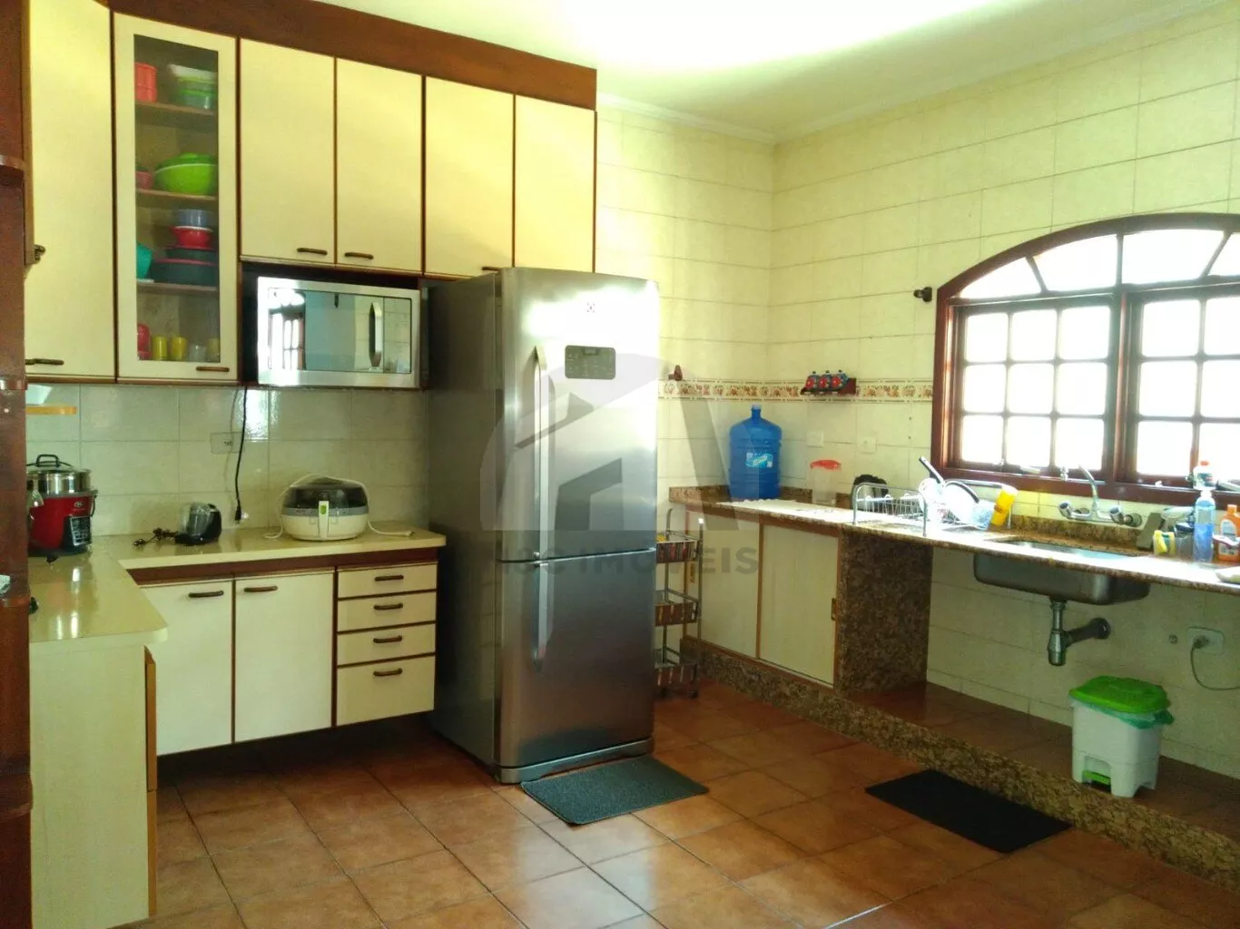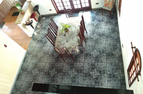 Este sobrado de alto padrão possui 4 dormitórios, todos suítes, além de 5 banheiros, sala, cozinha e 3 vagas de garagem.