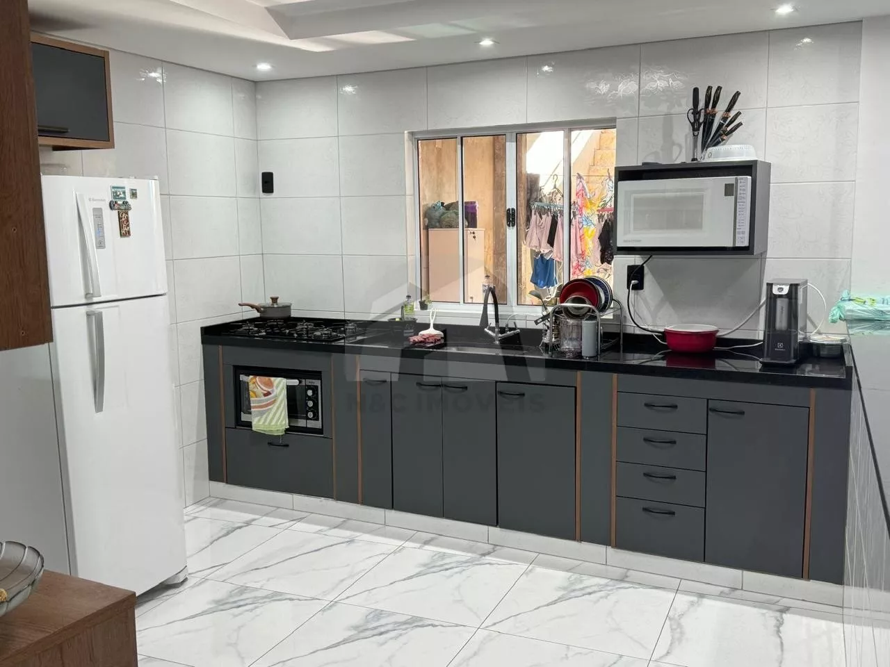 O imóvel dispõe de 3 dormitórios sendo 1 suíte, 4 banheiros, sala, cozinha, área com churrasqueira e 3 vagas de garagem.