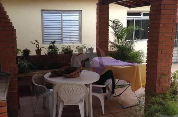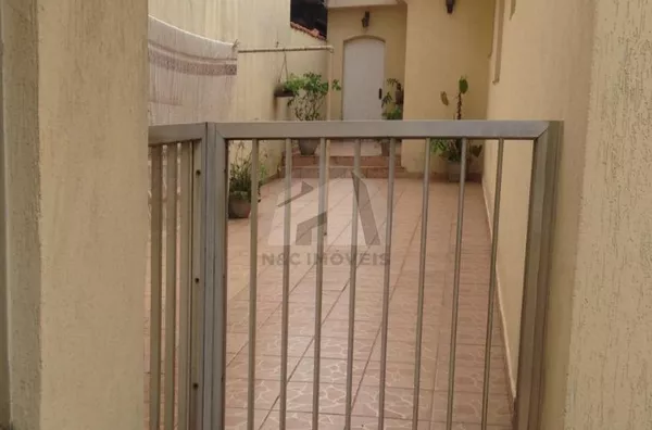 A casa é térrea, o terreno tem 350m² e construção 200m², são 3 quartos com uma suíte, 4 vagas de garagem, sala com lavabo, sala de jantar, cozinha, quintal com churrasqueira. Tem um salão no fundo de 50 metros com banheiro, quarto de empregada com banheiro e dois depósitos em baixo.