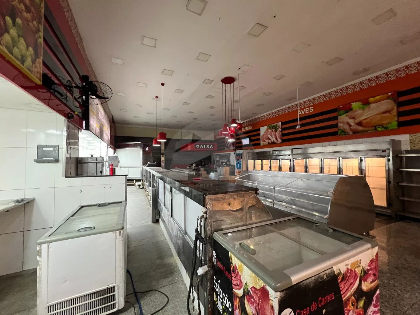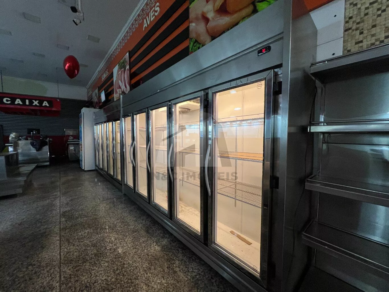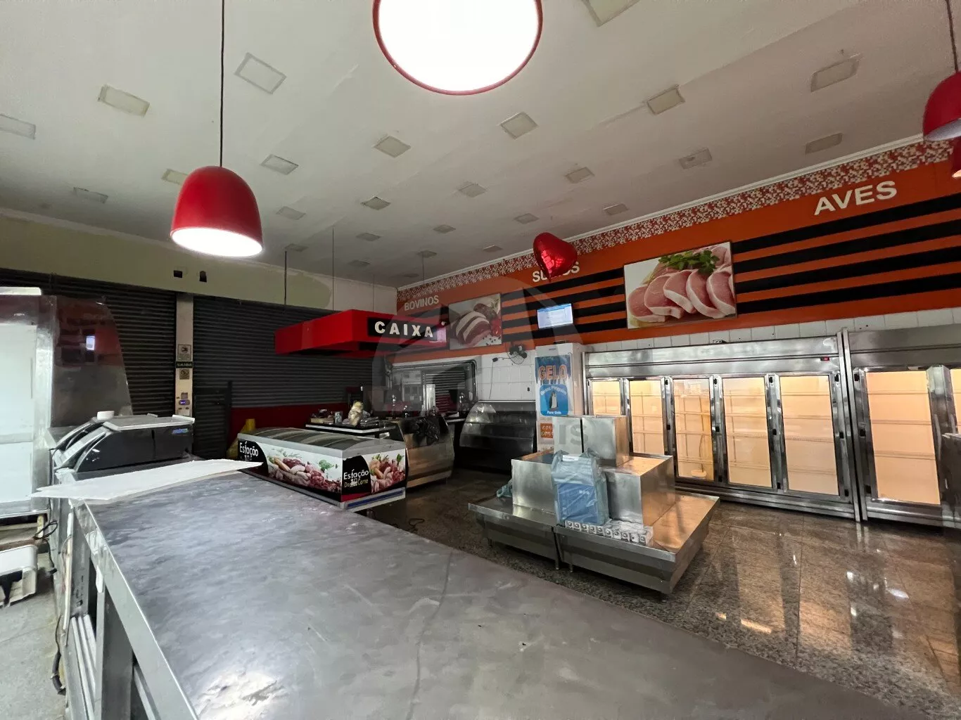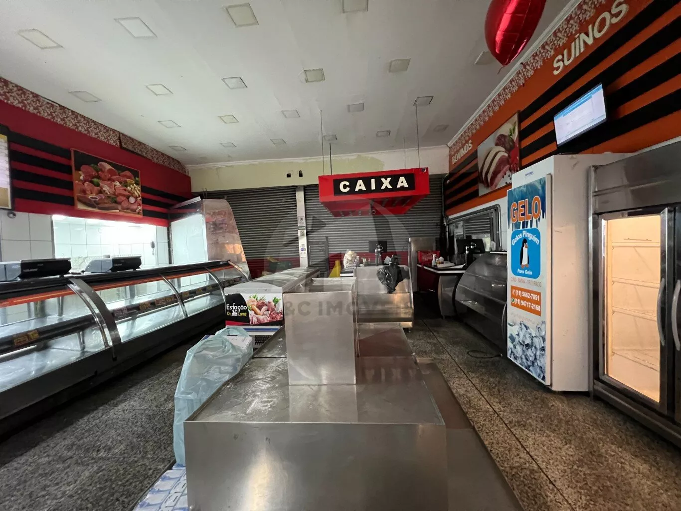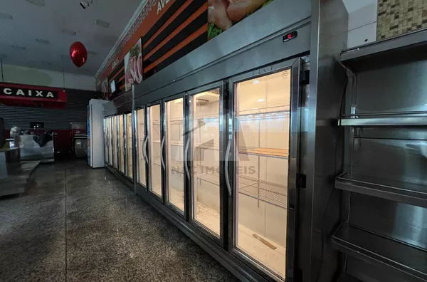 Este imóvel possui uma área total de 330 m² e é ideal para açougues, padarias e mercados. Está totalmente equipado com três banheiros, um escritório e uma câmara frigorífica para resfriamento de carnes.