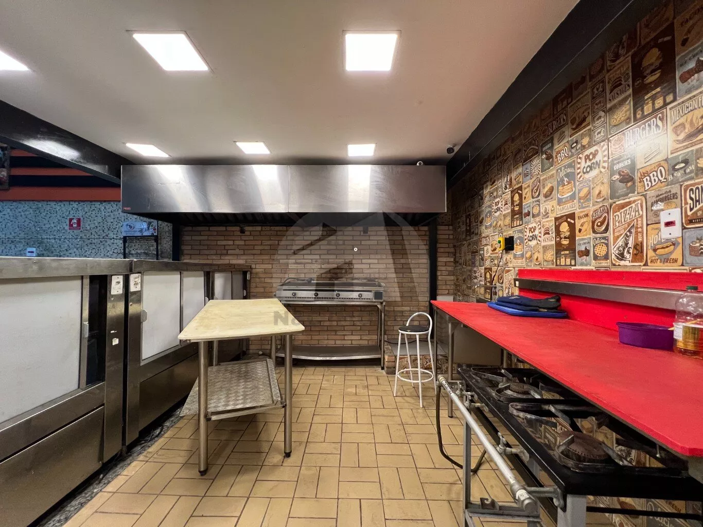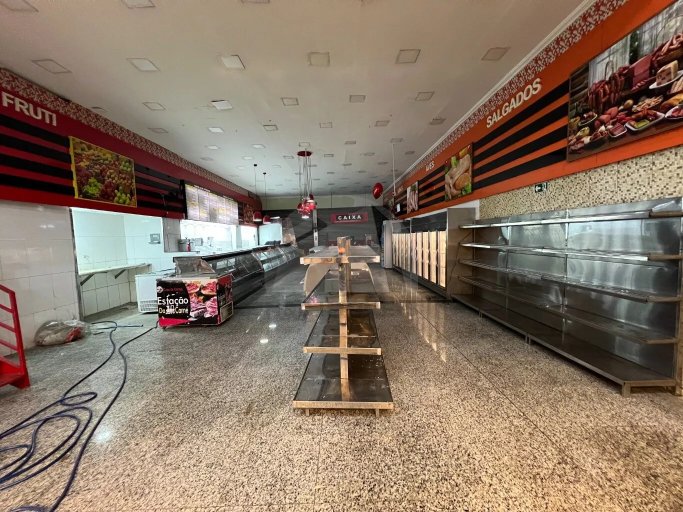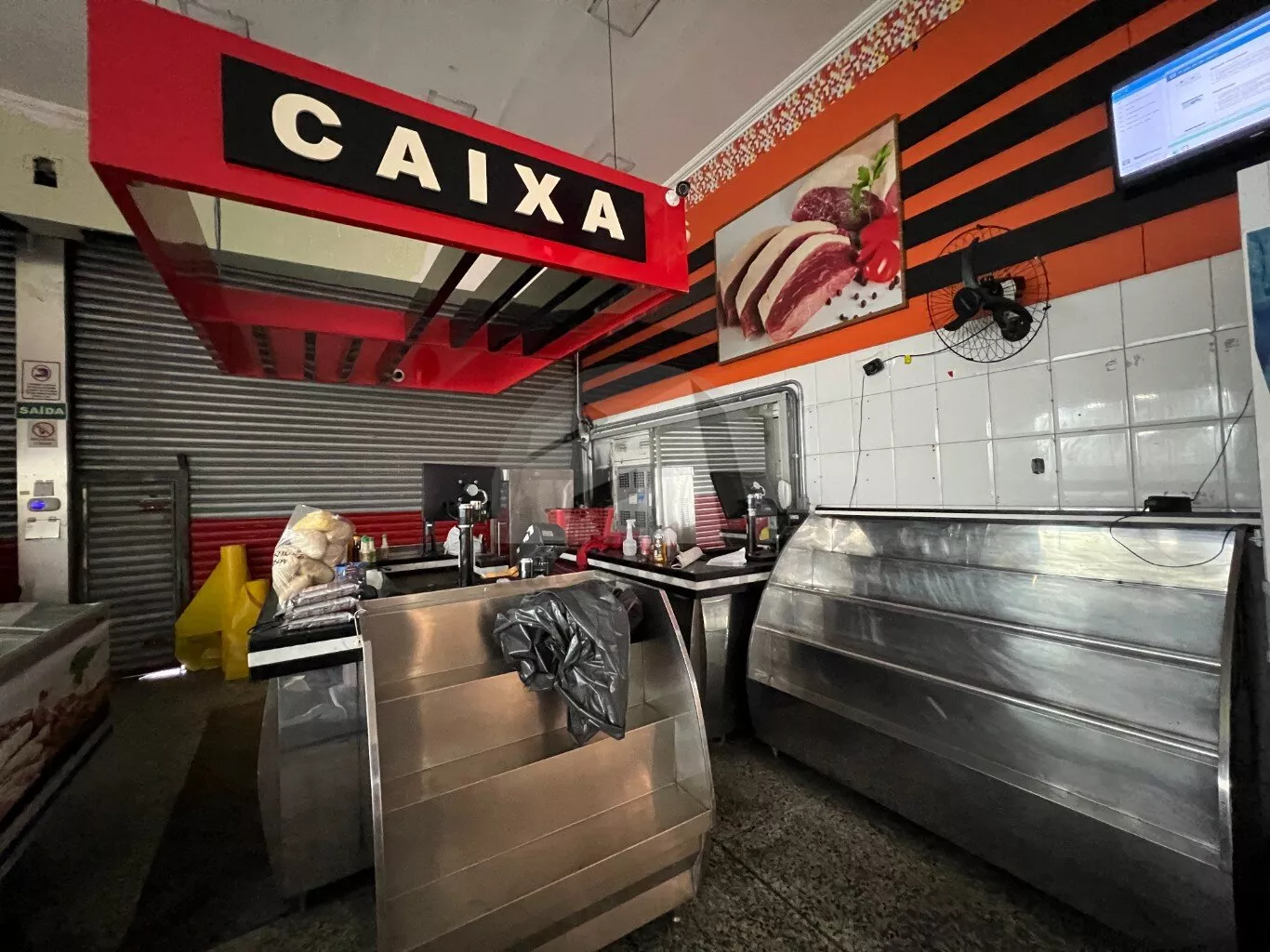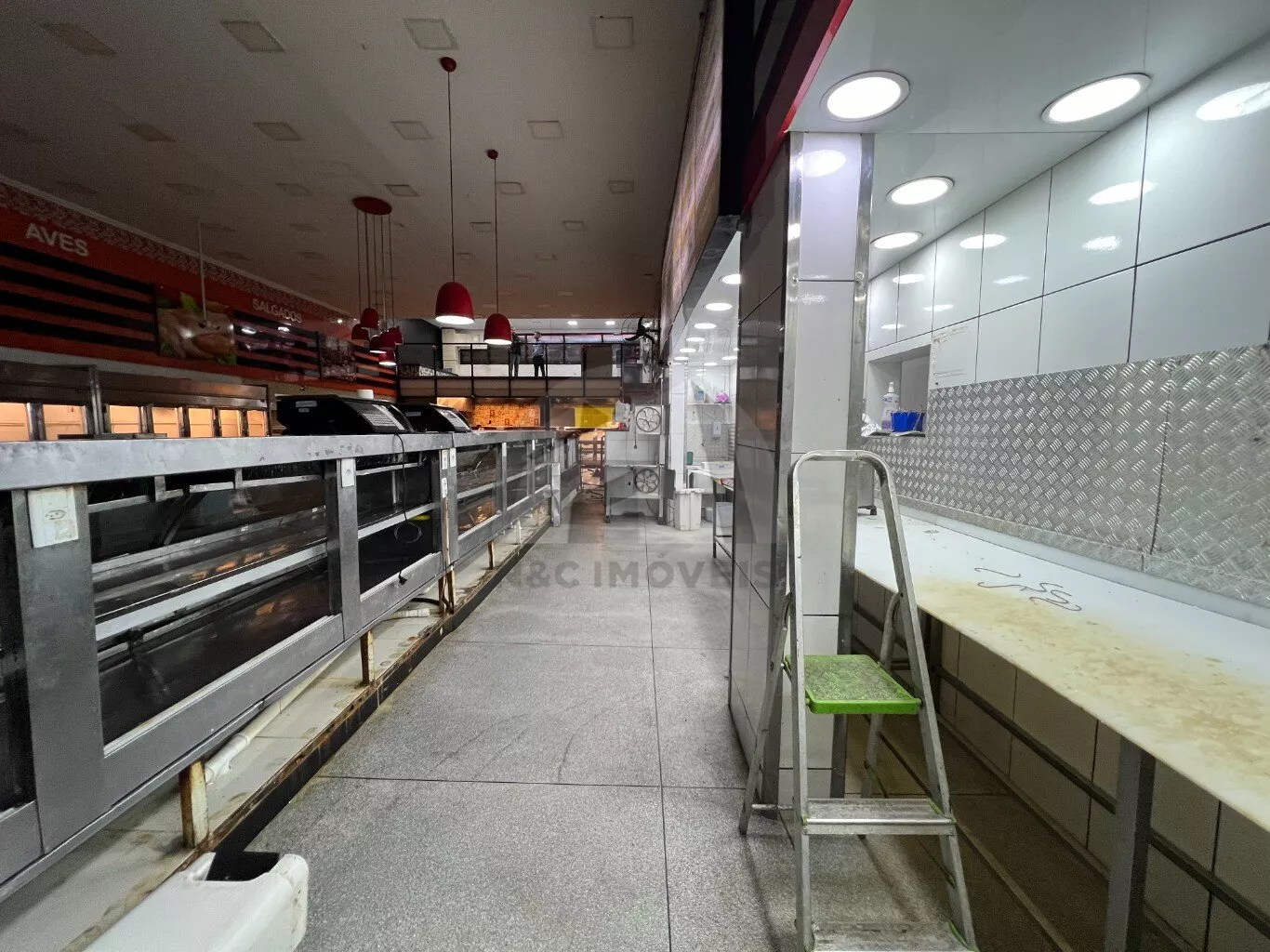 Este imóvel possui uma área total de 330 m² e é ideal para açougues, padarias e mercados. Está totalmente equipado com três banheiros, um escritório e uma câmara frigorífica para resfriamento de carnes.