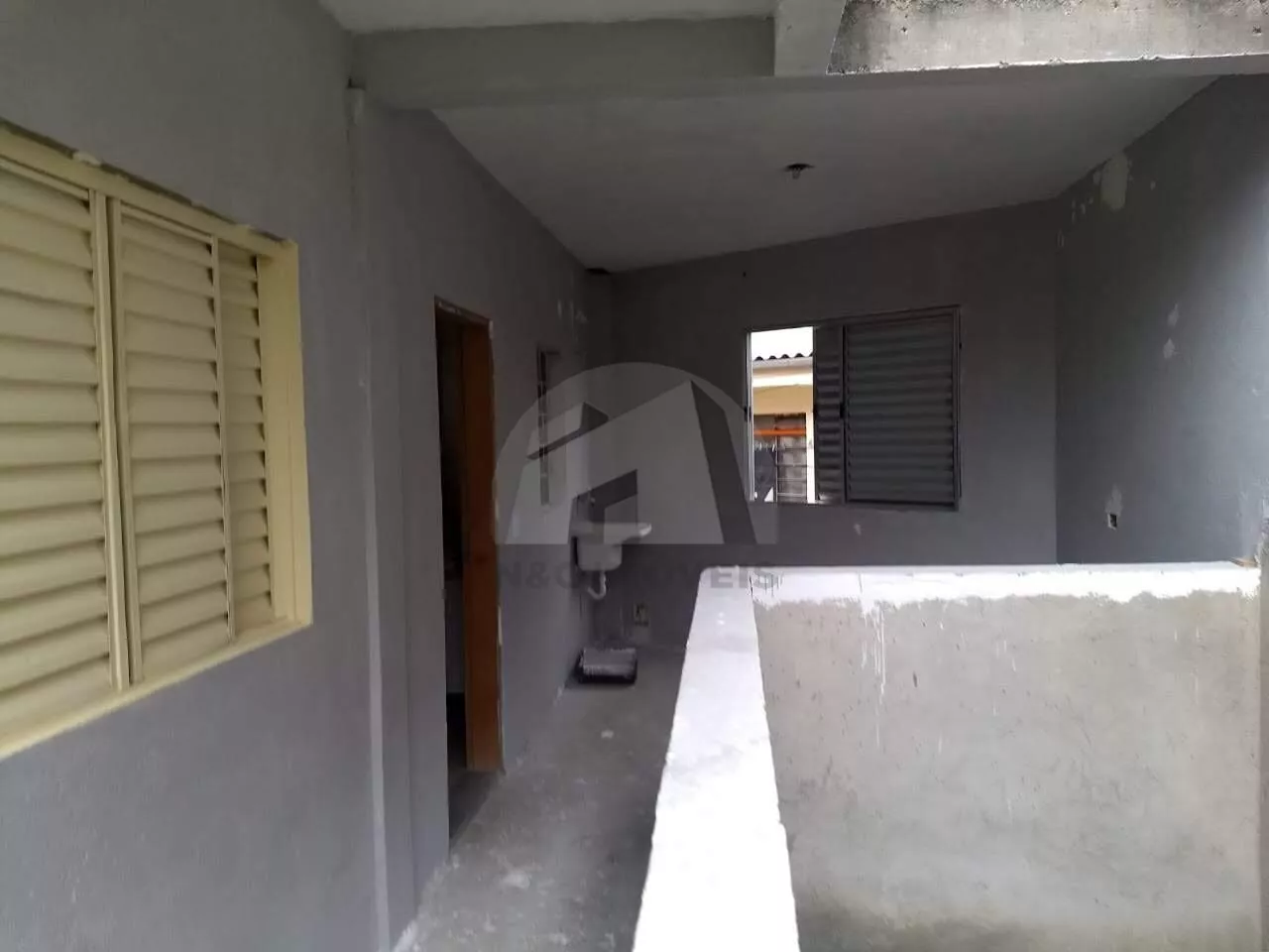 Casa térrea oferece dois confortáveis quartos, uma sala de estar acolhedora, uma cozinha funcional, um banheiro e uma lavanderia prática.