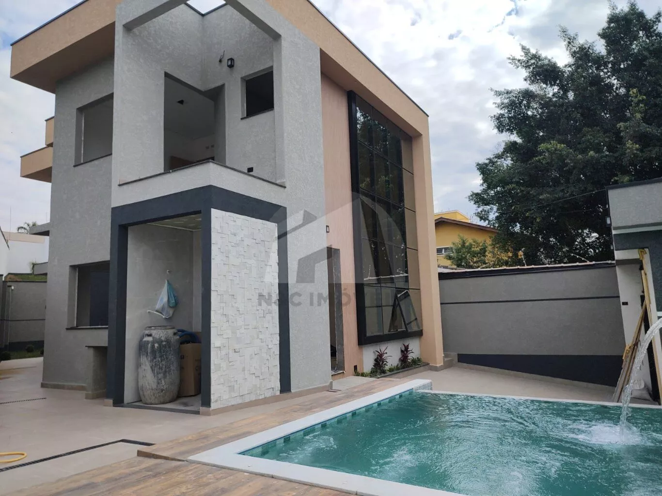 O imóvel dispõe de 3 dormitórios sendo 3 suítes, sala de estar com pé direito duplo, sala de jantar, cozinha, lavabo, depósito e 2 vagas na garagem.
