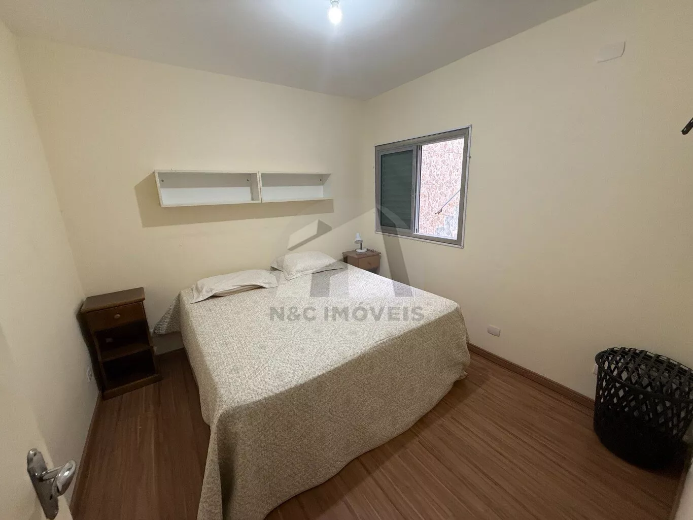 O imóvel conta com 3 dormitórios, todos com piso laminado, uma sala ampla e bem iluminada, com janelas grandes e piso em cerâmica, proporcionando ventilação e aconchego. A cozinha é funcional, com planejados e acesso ao quintal dos fundos. O banheiro social também conta com armário planejado.