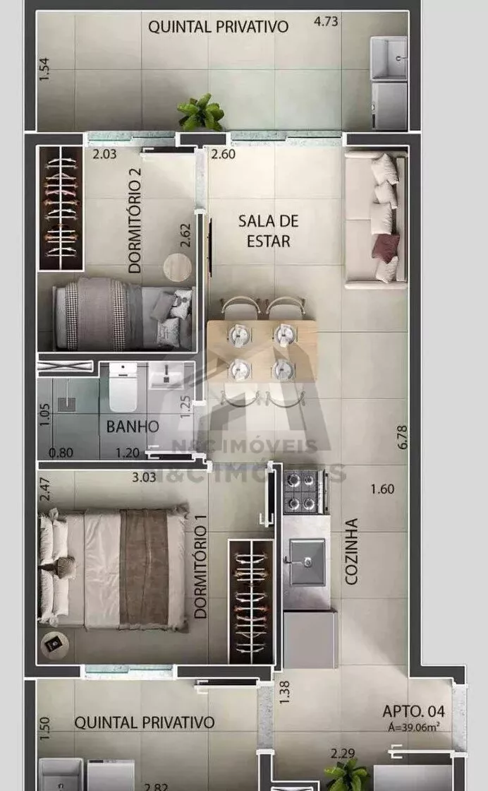 - Dormitórios: 2 espaço acolhedor para descansar!