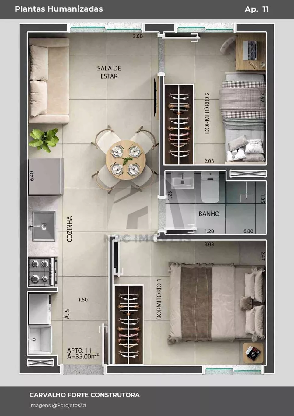 - Dormitórios: 2 espaço acolhedor para descansar!