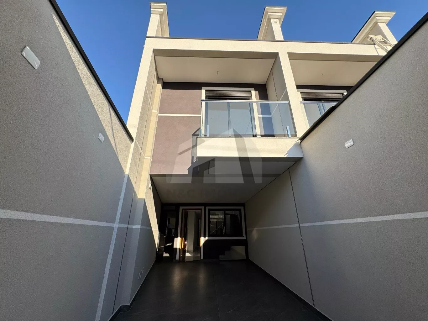 A fachada imponente já revela o padrão de qualidade do imóvel. Logo na entrada, você conta com 2 vagas de garagem (sendo uma coberta e outra descoberta) e portão automático, garantindo mais segurança e praticidade para o dia a dia.