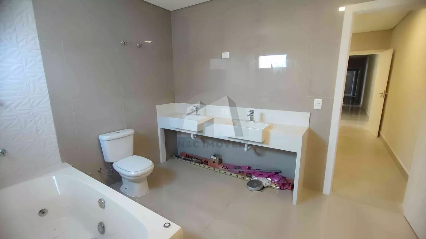 Sobrado espaçoso e sofisticado com 520m², projetado para oferecer conforto e praticidade em cada detalhe. O imóvel conta com 5 dormitórios, todos suítes2 suítes master com banheira jacuzzi, ampla sala de estar, uma ampla cozinha com ilha, área de serviço e edícula, além de 4 vagas de garagem.