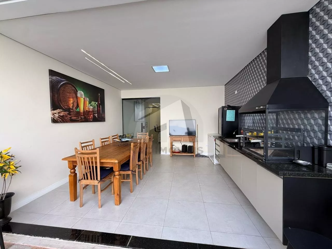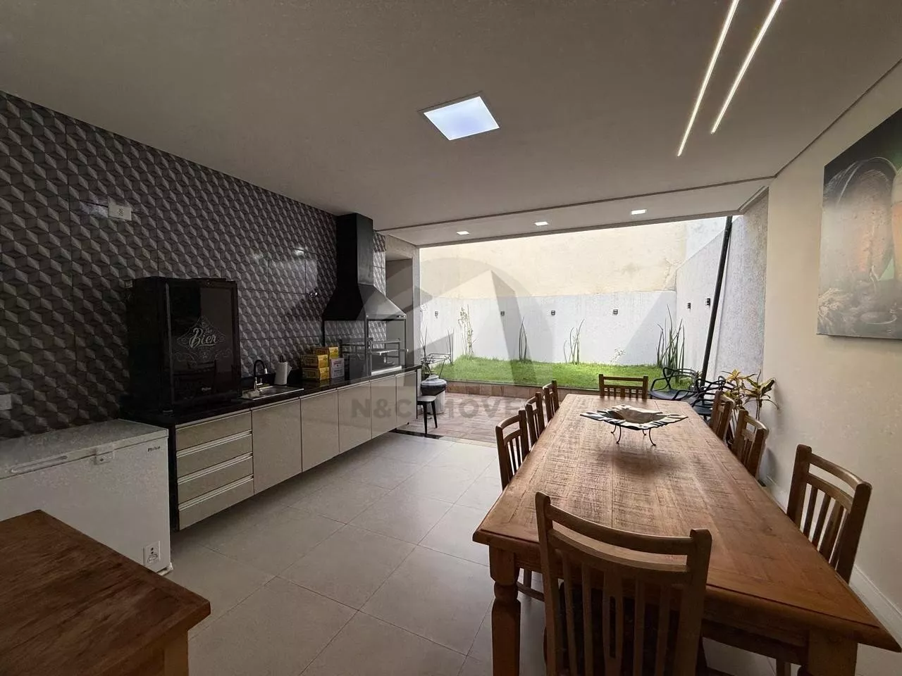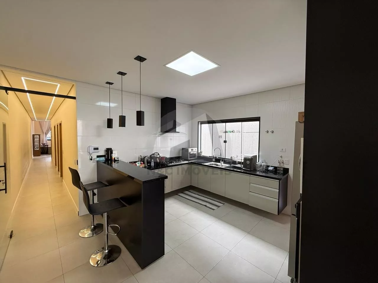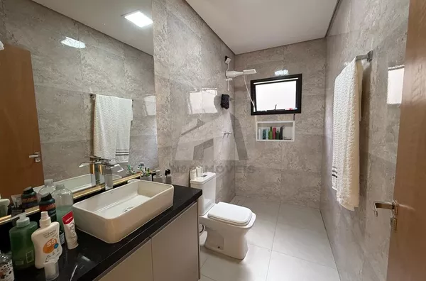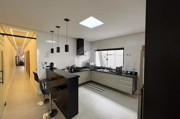 Situado em rua tranquila e residencial, o imóvel se destaca pelo projeto contemporâneo, ambientes amplos e excelente padrão de acabamento. Logo na entrada, a sala de estar com pé-direito duplo impressiona pela sensação de amplitude e pela abundante iluminação natural, além de contar com ar-condicionado, garantindo conforto térmico em todas as estações. A casa oferece ainda uma ampla sala gourmet integrada à cozinha, criando um espaço perfeito para receber convidados e desfrutar de momentos especiais com a família. O corredor lateral proporciona melhor circulação e ventilação aos ambientes.