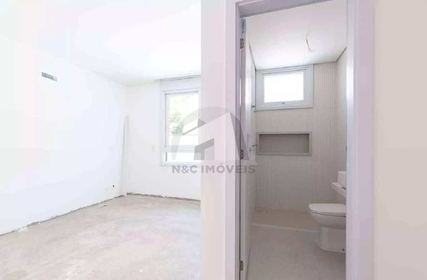 O imóvel conta com 4 dormitórios, todos suítes, sala ampla e aconchegante, cozinha planejada, sala de jantar e um belo jardim. São 4 vagas de garagem e toda a infraestrutura de um condomínio com piscina, garantindo momentos de lazer e bem-estar para toda a família.