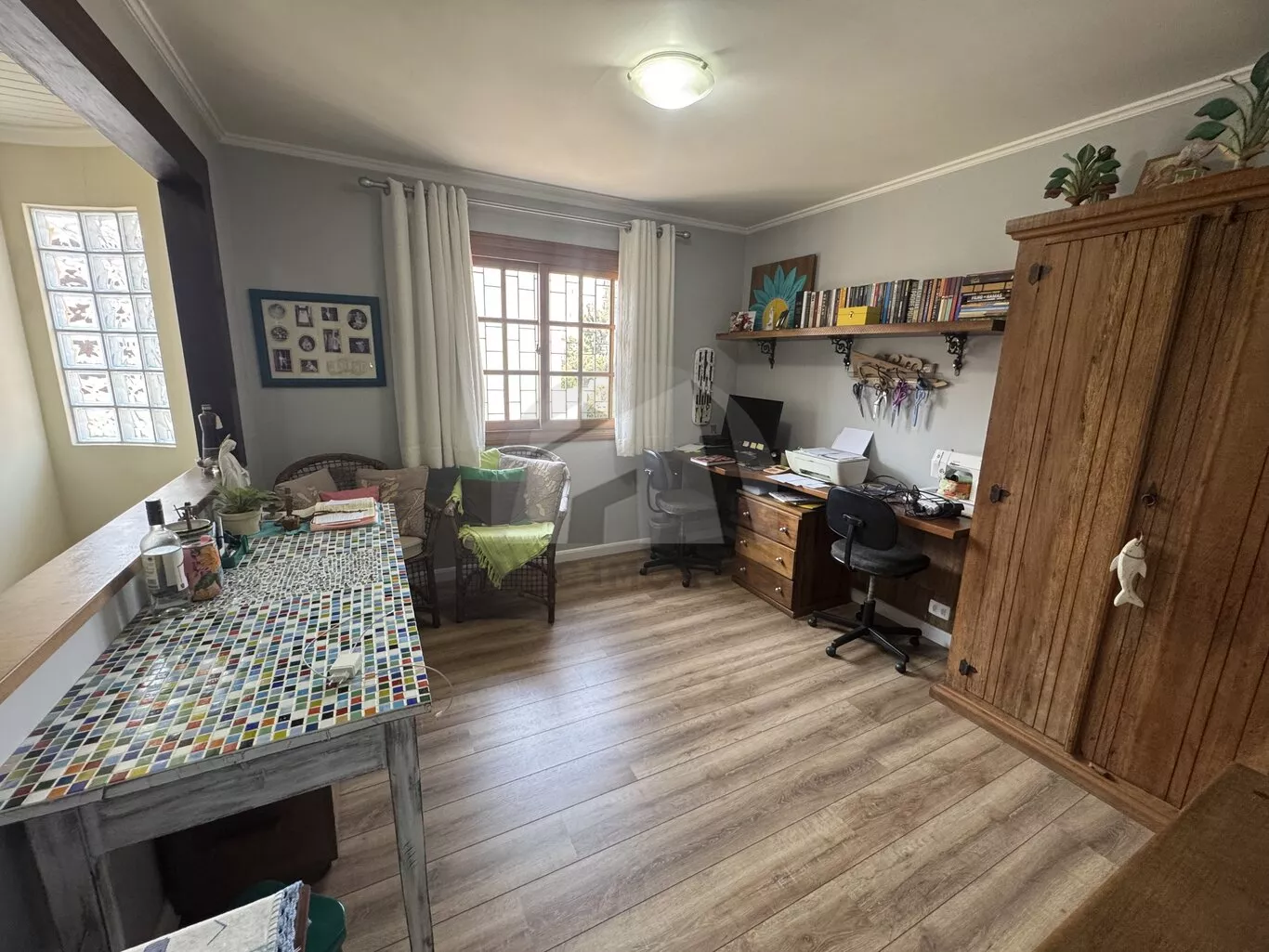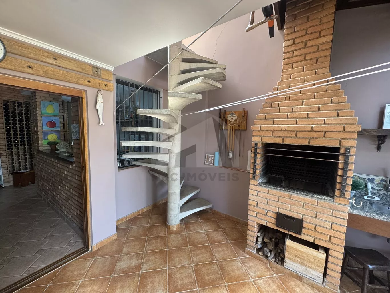A área social é ampla e acolhedora, com sala de estar com lareira, sala de jantar e uma charmosa cozinha com vista para o bairro arborizado. No piso inferior, o quintal conta com uma área gourmet integrada a uma sala espaçosa, ideal para reunir a família e amigos em momentos especiais.