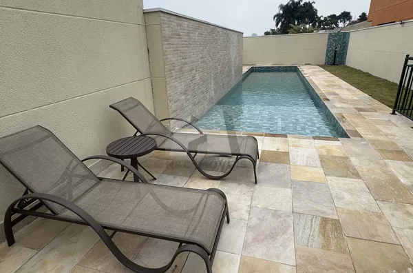 A área externa dispõe de um espaço gourmet com churrasqueira, além de chuveiro a gás e portaria 24 horas, garantindo segurança e comodidade para toda a família.