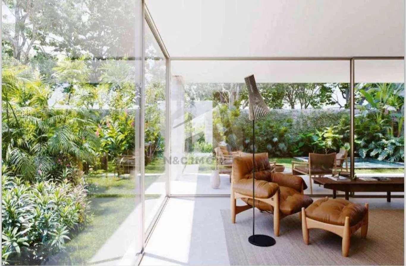 O imóvel possui 671,85m², 3 suítes, com opção para a 4ª suíte no rooftop, além de 4 vagas de garagem no subsolo.