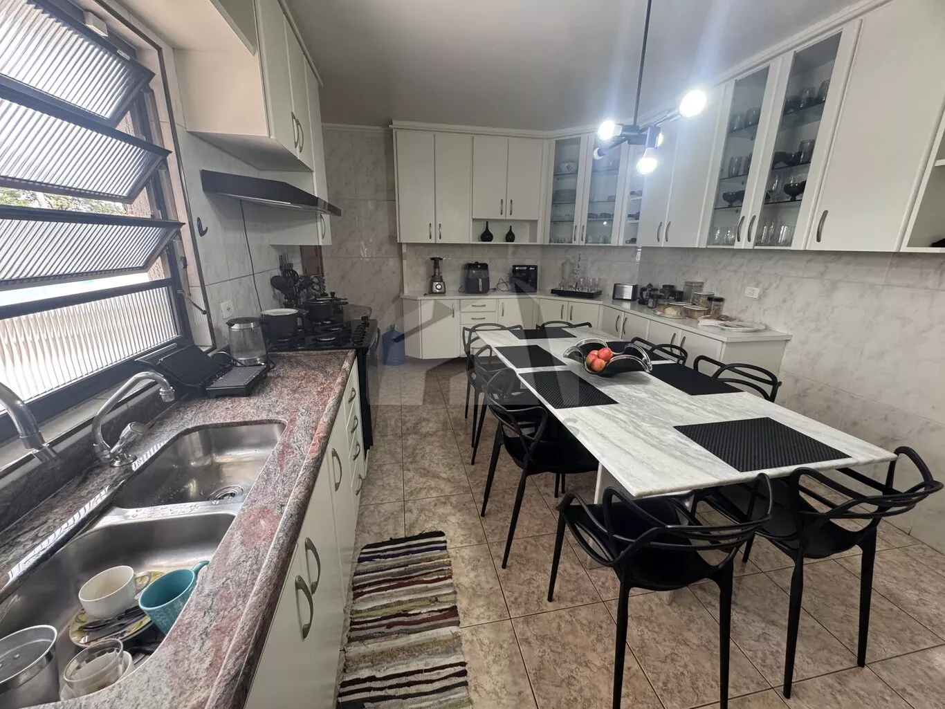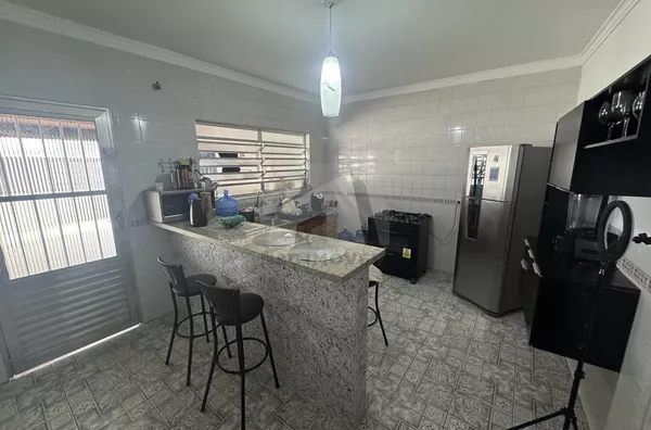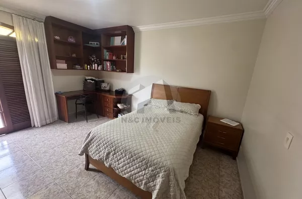 A cozinha, equipada com armários planejados, integra-se à copa, proporcionando funcionalidade no dia a dia. Para quem valoriza lazer e convivência, o imóvel oferece quintal espaçoso, churrasqueira, piscina e um jardim exuberante, criando um ambiente perfeito para momentos ao ar livre.