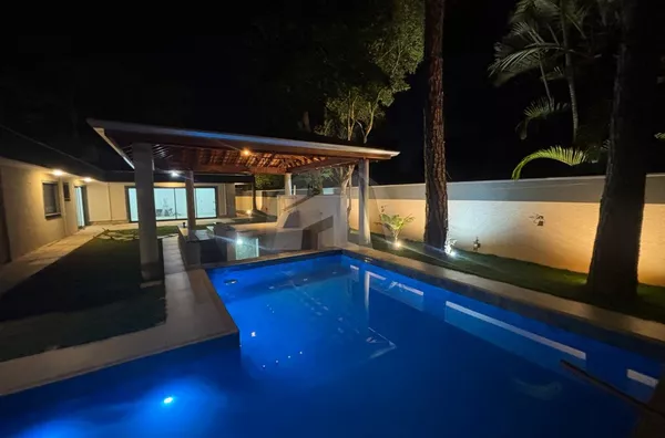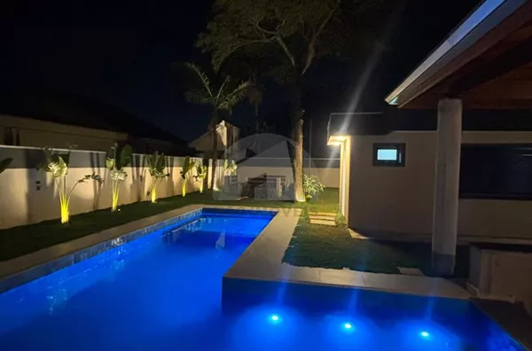 Apresentamos uma espetacular residência térrea de alto padrão, construída em um terreno de 1.000 m², com aproximadamente 500 m² de área construída, que combina modernidade, sofisticação e conforto. Com 4 suítes espaçosas, um quinto dormitório e ambientes amplos como salas de estar, jantar e home theater, esta casa foi projetada para oferecer praticidade e elegância em cada detalhe. O imóvel conta com ar-condicionado em todos os cômodos, cortinas instaladas, mobília nova e aquecimento central com boiler de 800 litros, além de preparação para carregamento de carro elétrico. A garagem acomoda 4 veículos com total comodidade.