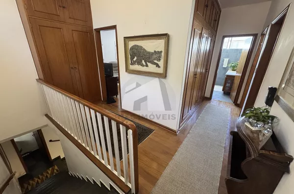 No pavimento superior, a área íntima oferece 3 dormitórios, sendo 1 suíte, além de banheiro social e uma agradável varanda que proporciona iluminação e ventilação natural, reforçando o conforto da residência. Na entrada, um jardim arborizado completa o charme do imóvel e torna o ambiente ainda mais acolhedor.