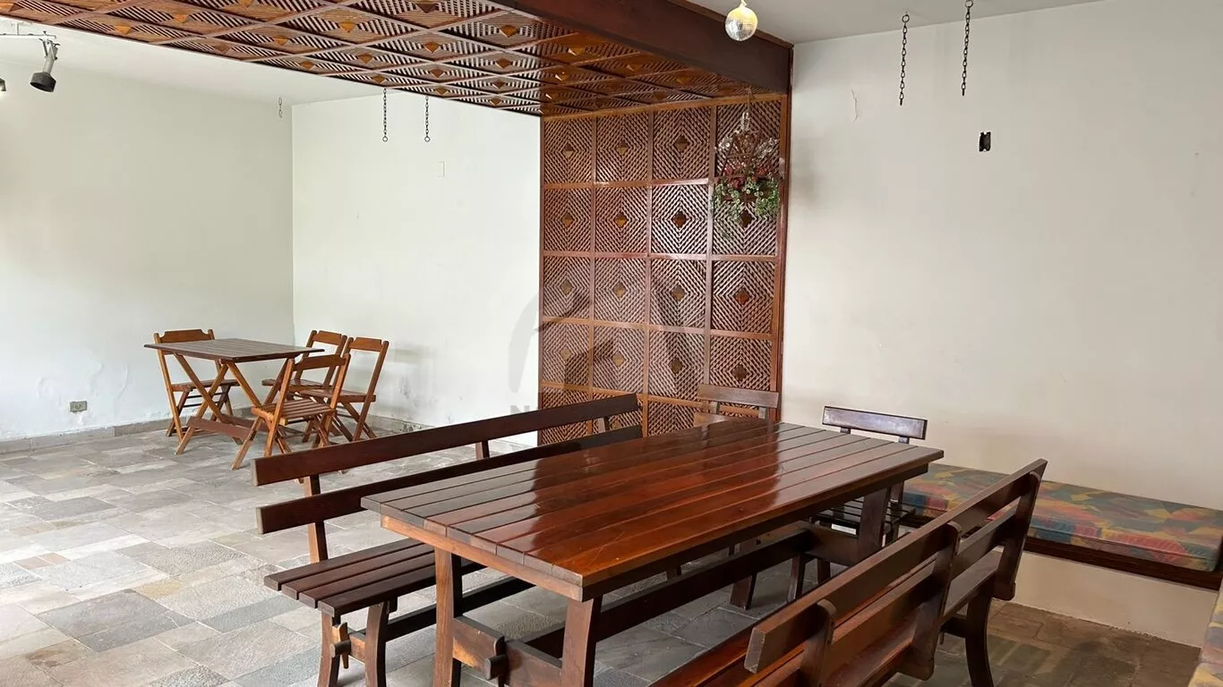 A área externa é um verdadeiro refúgio, com jardim encantador, piscina, salão de festas e churrasqueira. Acima do salão de festas, há dois escritórios amplos com banheiro, perfeitos para quem trabalha em home office, garantindo total independência entre trabalho e vida pessoal. A casa dispõe ainda de lavanderia coberta, quarto de funcionários, banheiro, dois depósitos e adega não climatizada.