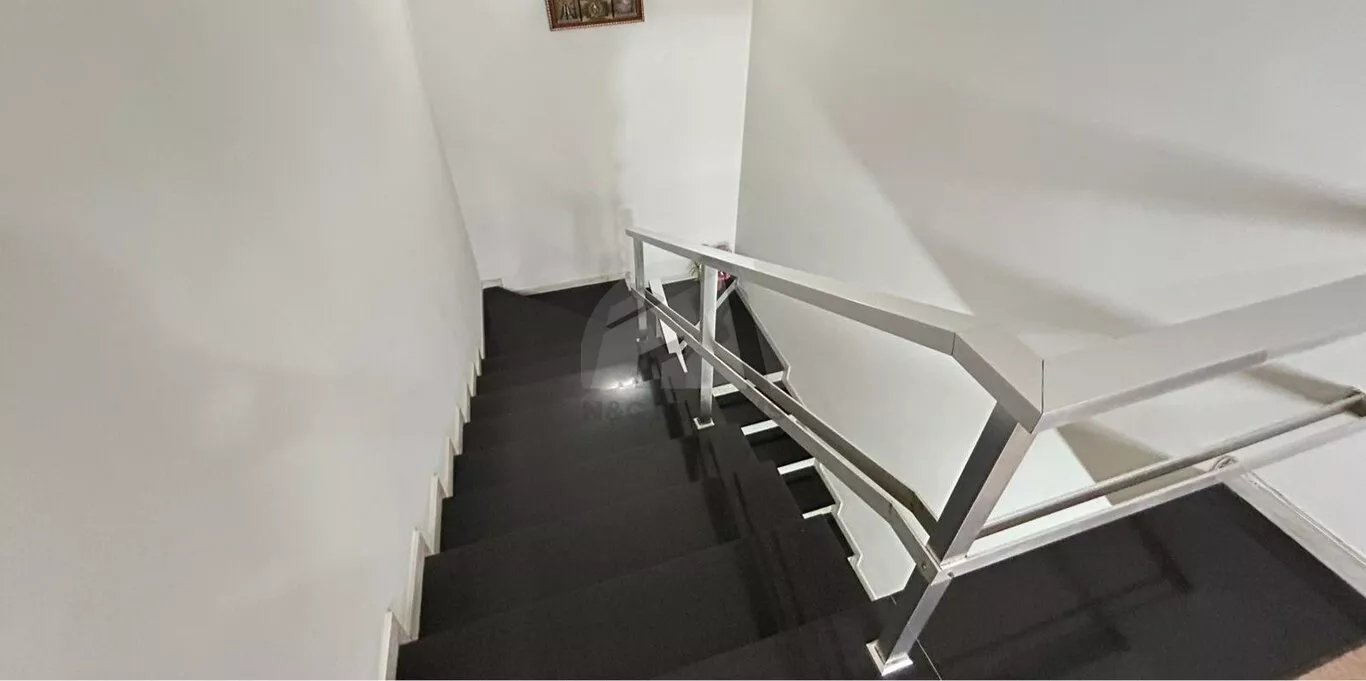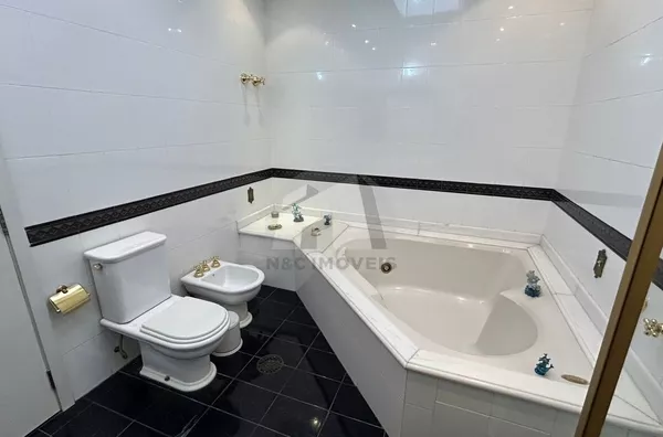 No andar superior, há 3 dormitórios amplos, sendo uma suíte master generosa em espaço, com armários embutidos, banheiro sofisticado com móveis sob medida e banheira de hidromassagem. Os outros dois quartos também são amplos, com armários embutidos e contam com banheiro moderno projetado por arquiteto. O pavimento ainda oferece uma sala de TV confortável e um escritório, ideal para estudos ou trabalho.