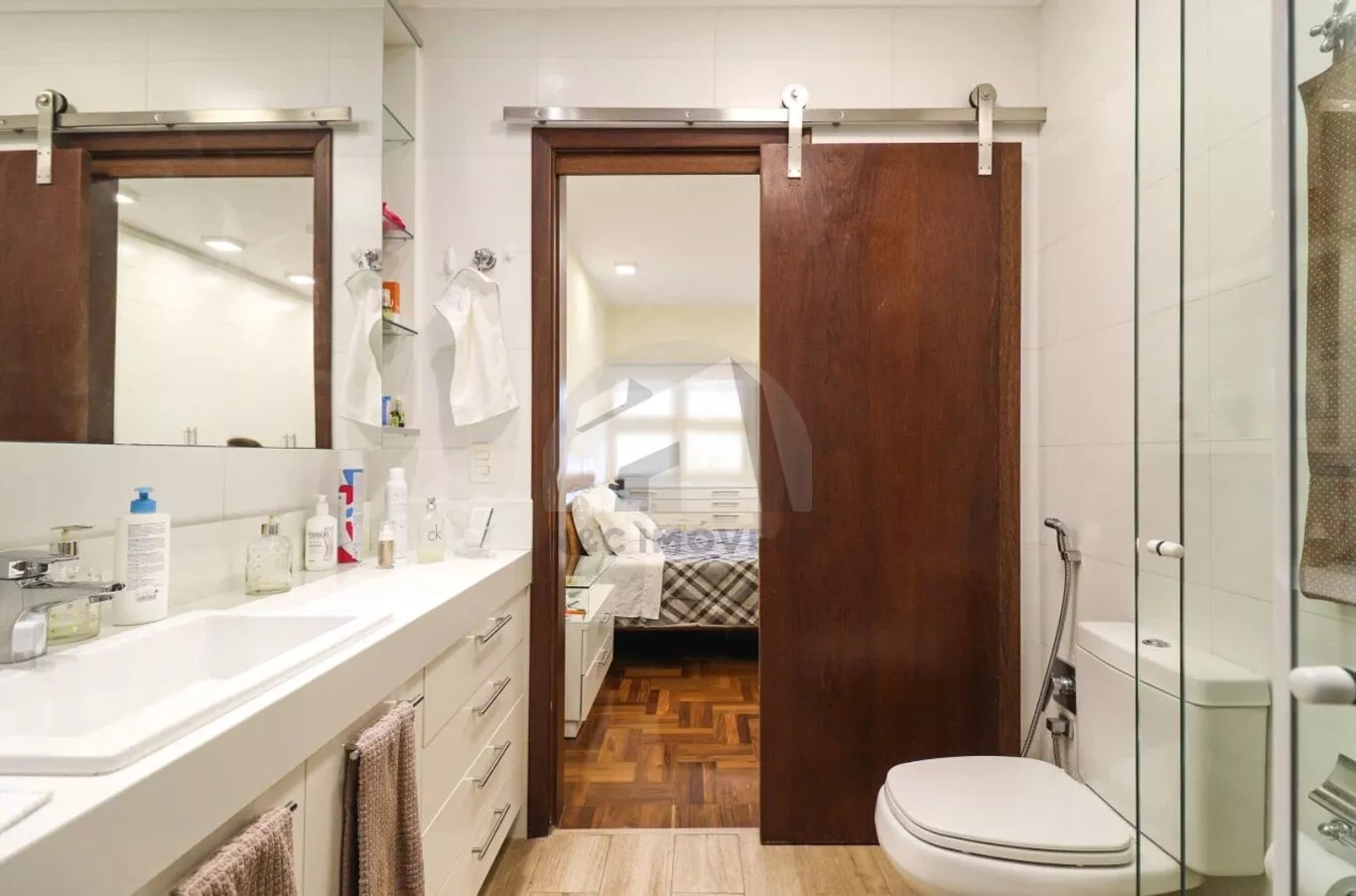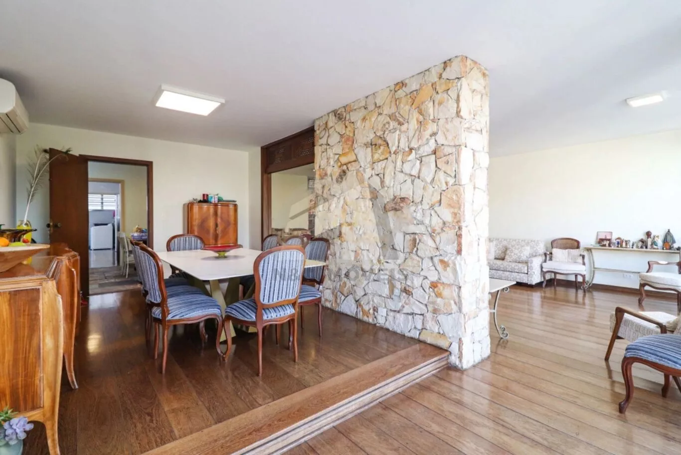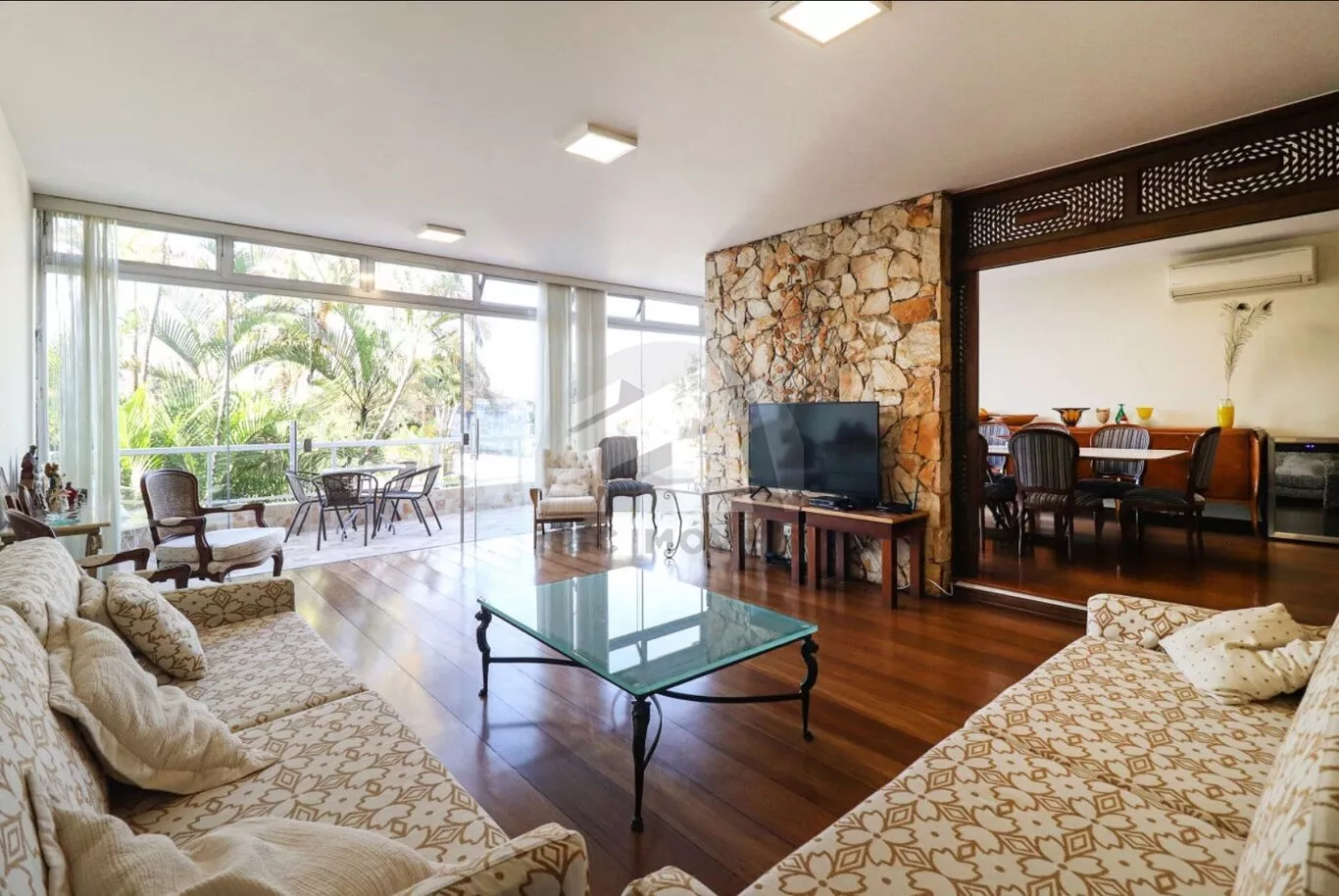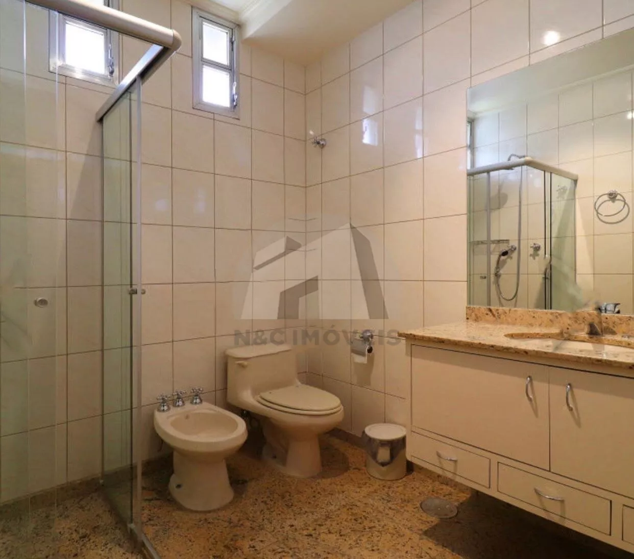 No pavimento superior, a área íntima é composta por duas suítes muito amplas e dois dormitórios grandes no modelo americano, atendidos por um banheiro espaçoso. Todos os quartos e o corredor possuem ar-condicionado, oferecendo conforto térmico em todos os ambientes.