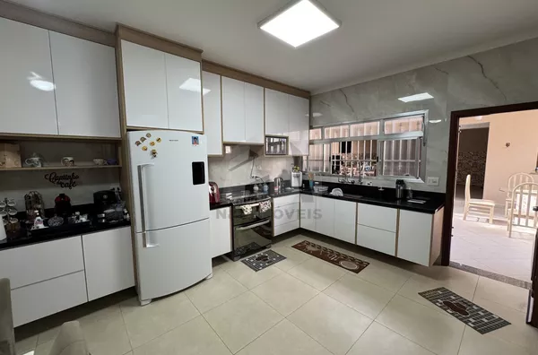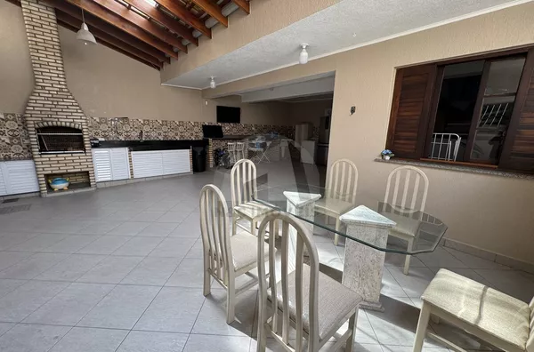 O imóvel dispõe de 4 dormitórios, sendo 1 suíte master com hidromassagem, armários planejados, sacada privativa e ar-condicionado, oferecendo conforto e privacidade. A sala de estar com pé-direito duplo proporciona amplitude e sofisticação, com ambientes bem integrados. A casa conta ainda com cozinha planejada com copa, escritório e uma área gourmet completa, ideal para receber familiares e amigos.