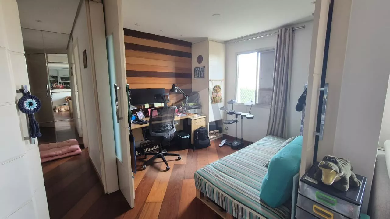 O imóvel foi planejado para oferecer funcionalidade e sofisticação, contando com 3 dormitórios, sendo 1 suíte, e um total de 3 banheiros. A versatilidade é garantida por um quarto reversível, ideal para a montagem de um home office ou sala de TV, além de uma despensa repleta de armários e um quarto de serviço. A área social é integrada por uma moderna cozinha americana planejada, já equipada com cooktop e coifa, que se conecta a uma sala elegante com buffet e cristaleira embutidos. Para a segurança de sua família, todas as janelas já possuem telas de proteção.