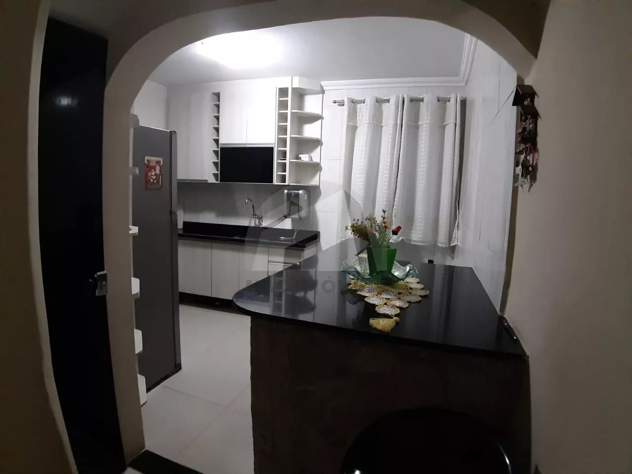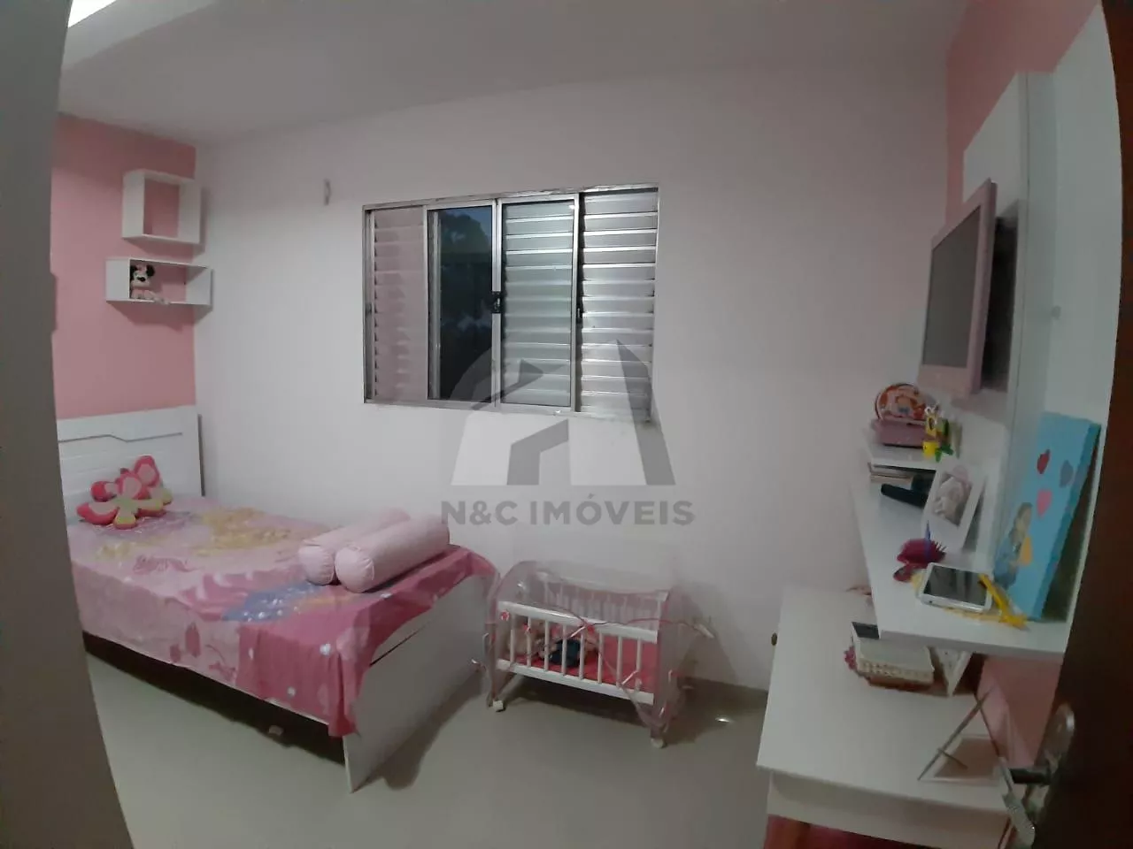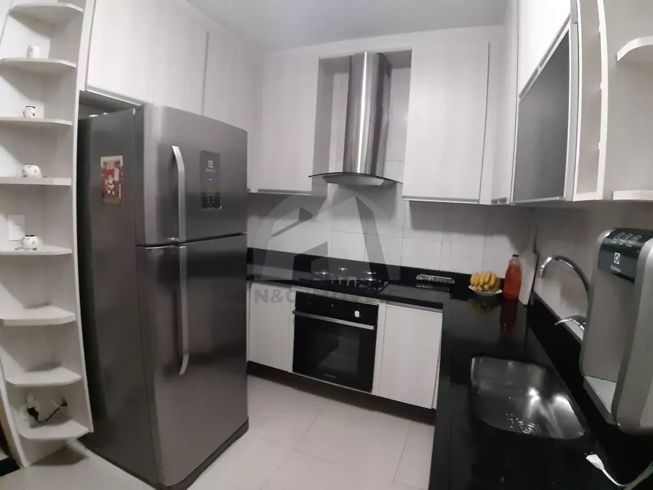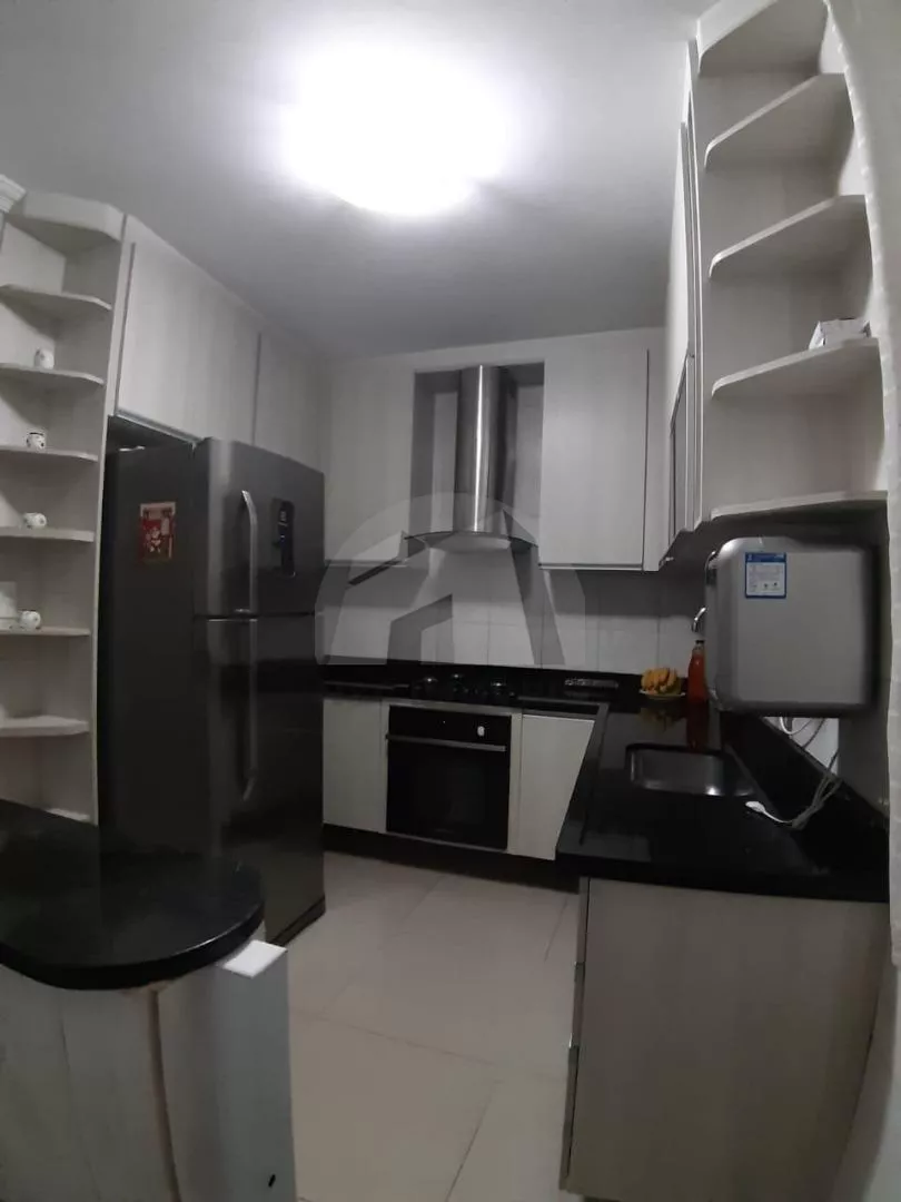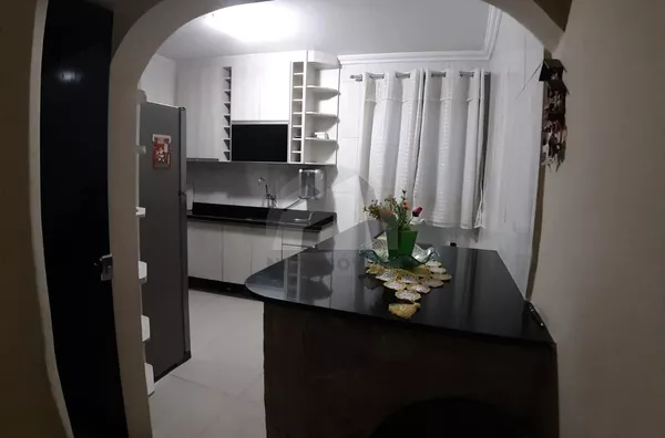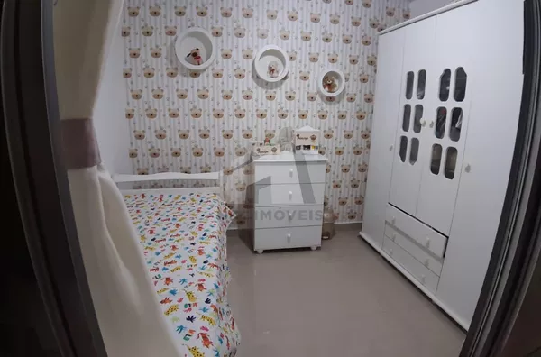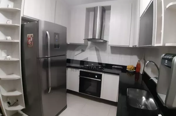 Conta com 3 dormitórios, sendo uma suíte, sala grande com varanda, cozinha com móveis planejados, lavanderia e garagem para dois carros.